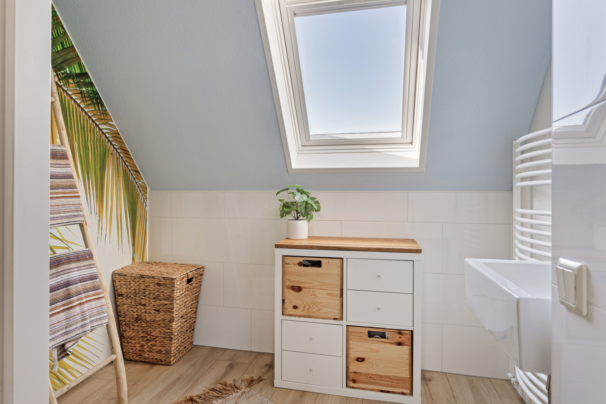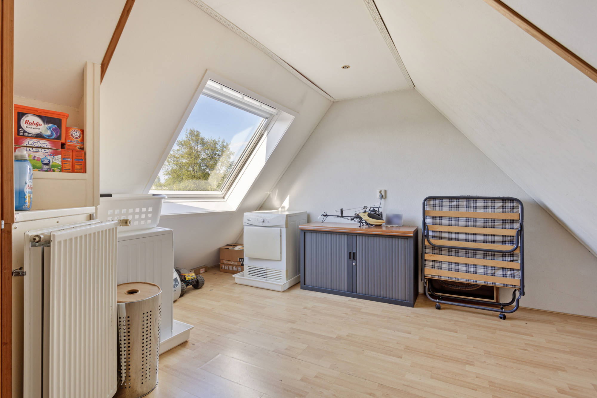 - Aansluitingen voor de wasapparatuur op zolder;