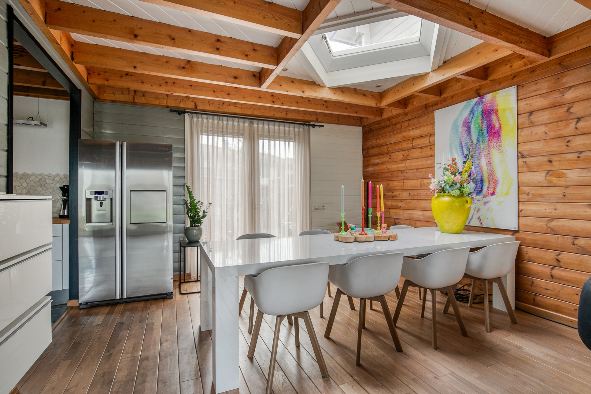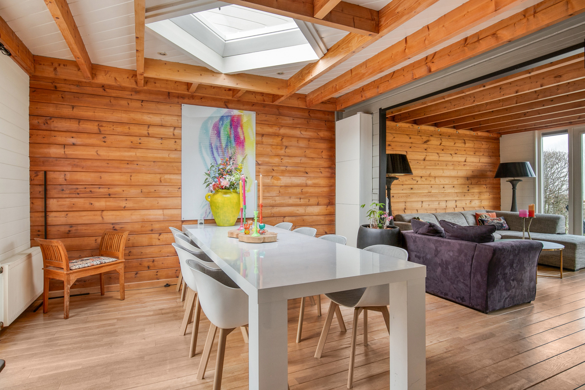 Aan het einde van een straat waar alleen bestemmingsverkeer komt, aan een gezellig pleintje met betrokken buren, ligt deze bijzondere woning. Een huis waar de huidige eigenaren maar liefst 16 jaar met veel plezier hebben gewoond en dat voel je in alles. De sfeer is gemoedelijk, de buurt hecht en de omgeving groen. Het huis zelf is van hout, uitstekend onderhouden en minstens zo bijzonder.