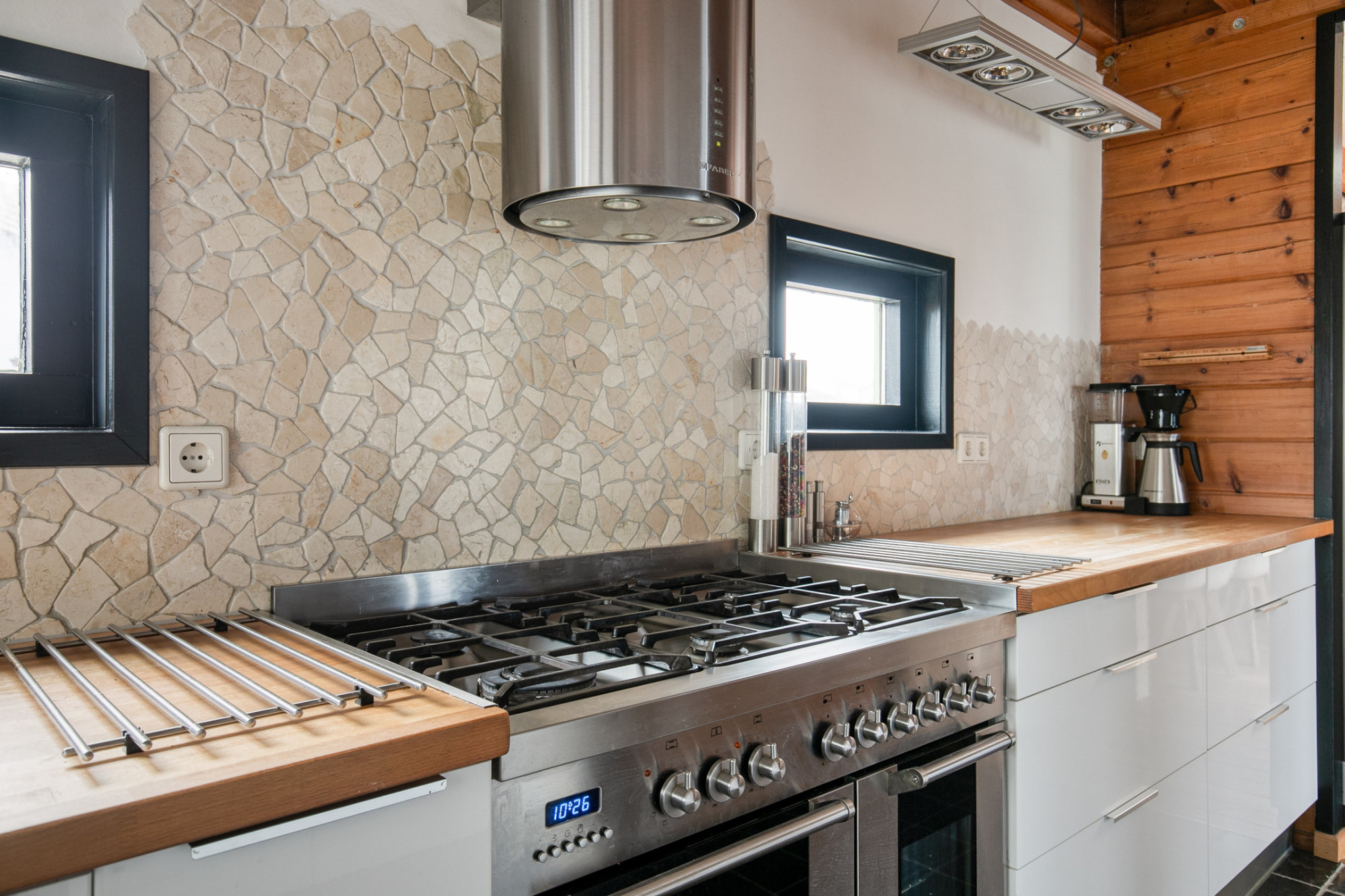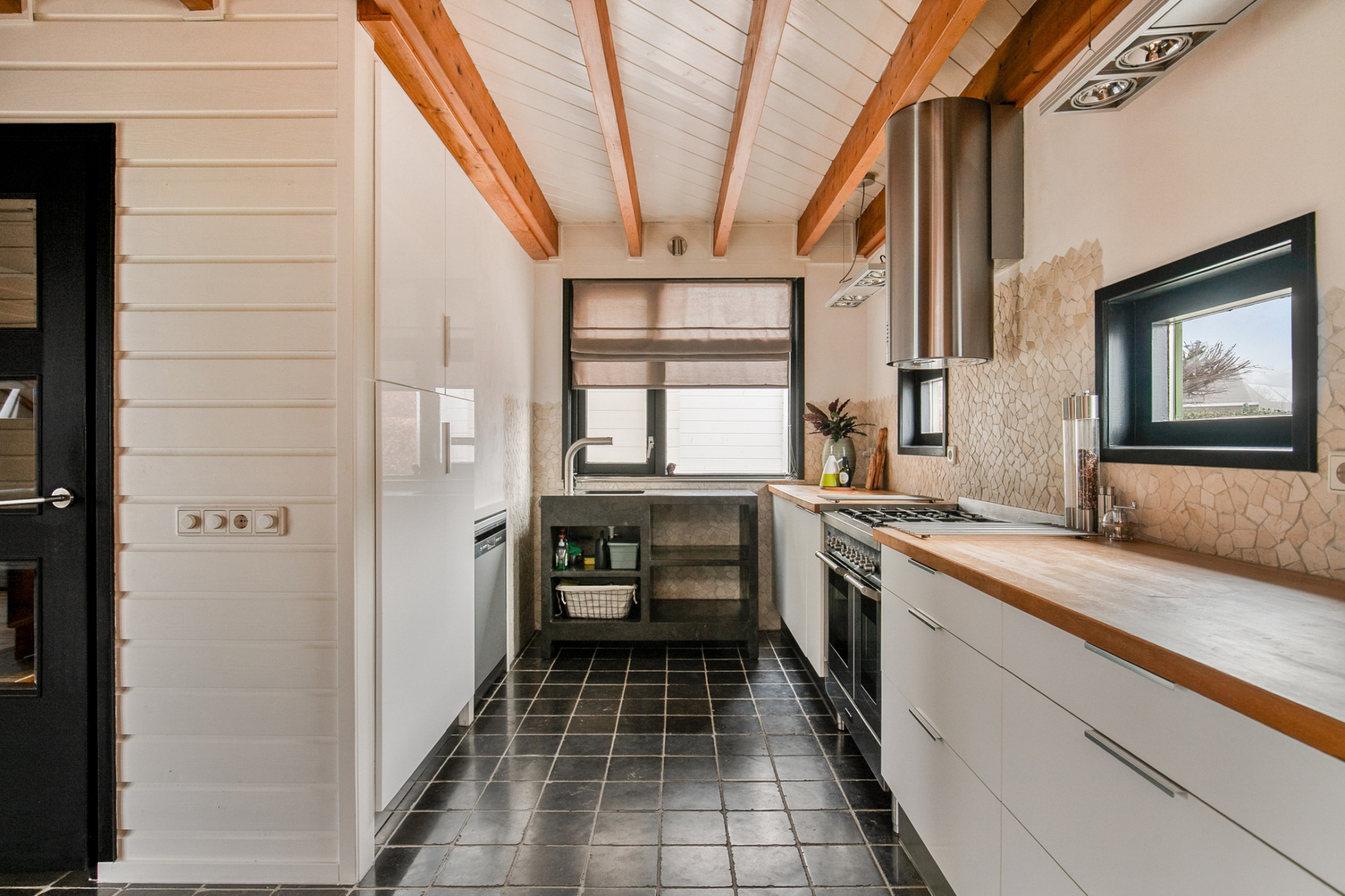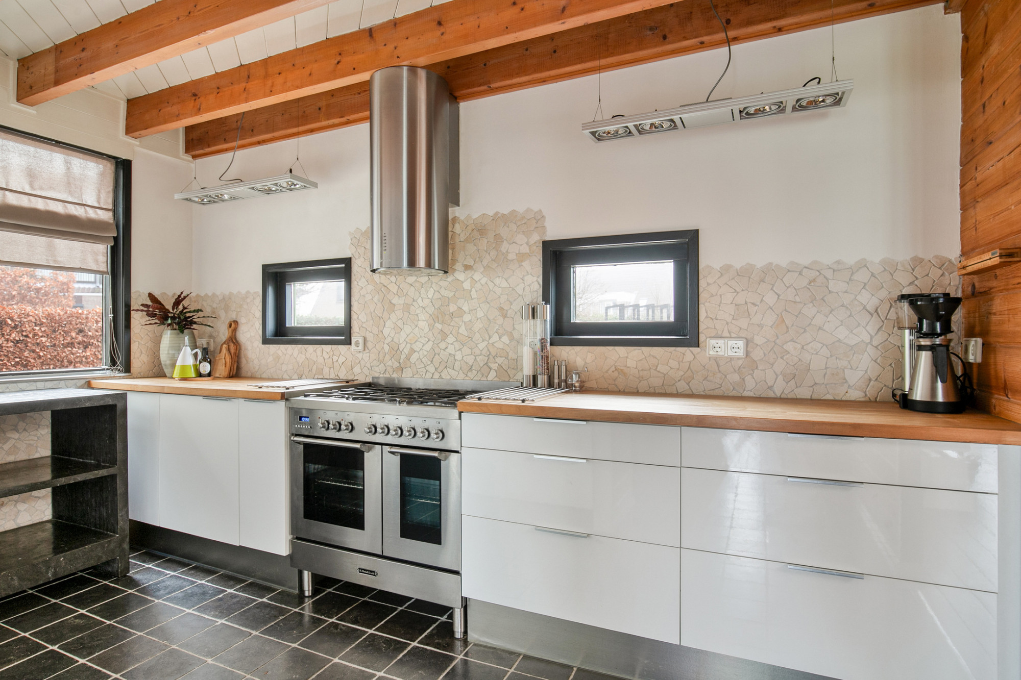 - Basalt natuurstenen vloer en keukenblad;