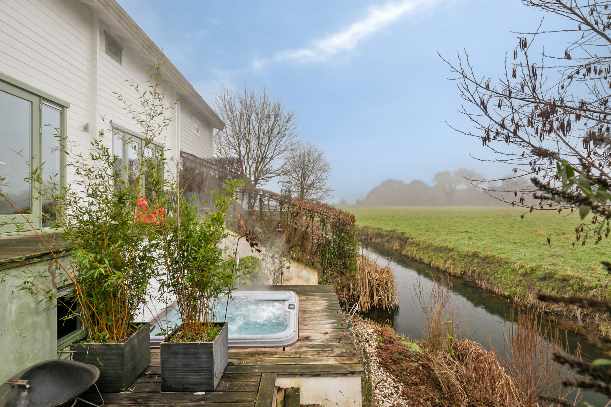 - Jacuzzi, buitendouche en meerdere terrassen met uitzicht op water en groen;