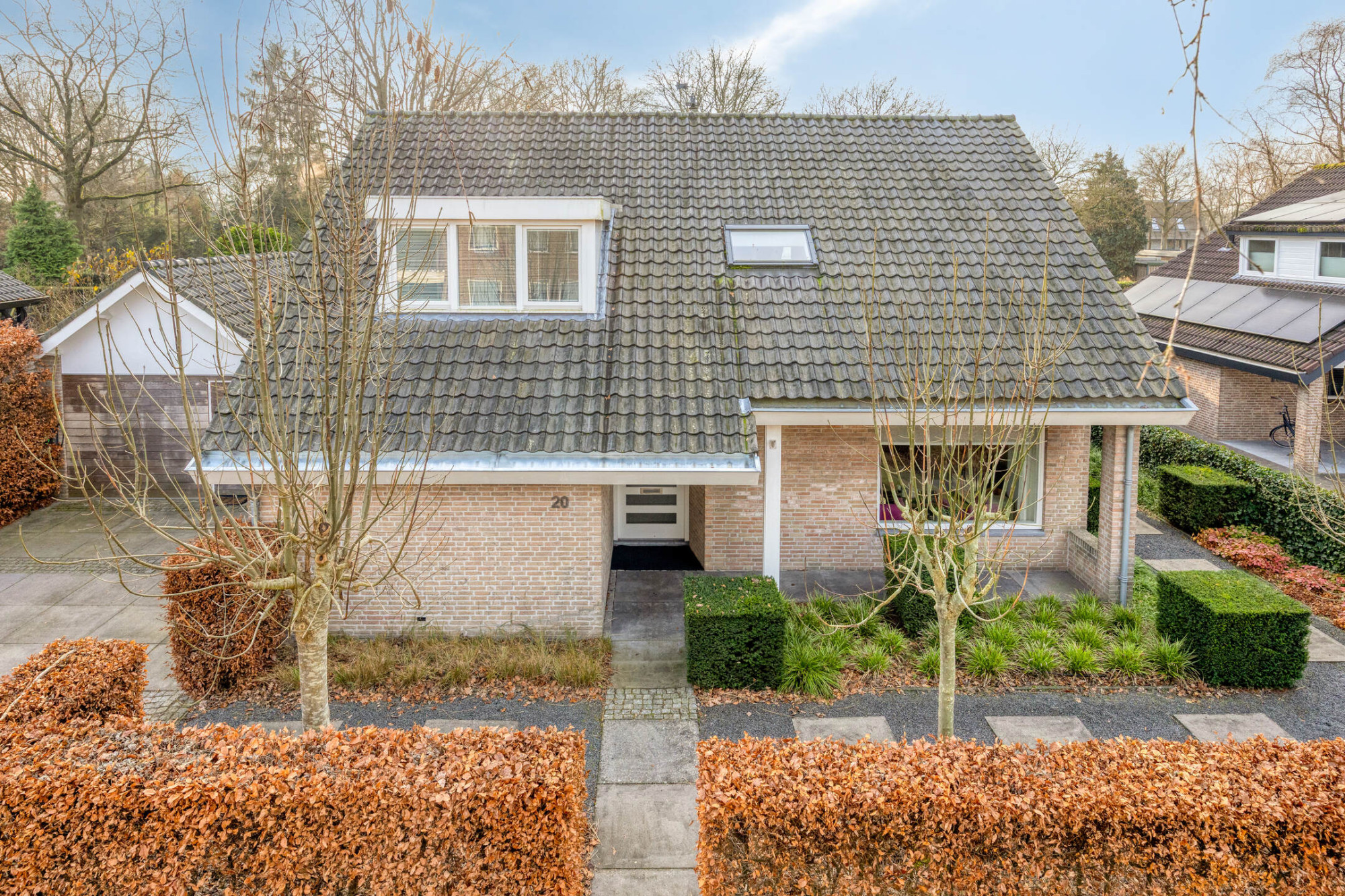 De fraai aangelegde achtertuin op het zuiden van maar liefst 320 m² is een absoluut pluspunt. Hier geniet je de hele dag van de zon, neem je een verfrissende duik in het zwemvijver of ontspan je onder de overkapping. Deze plek is perfect voor lange zomeravonden. De woning beschikt over twee bergingen en ruimte om twee auto’s op eigen terrein te parkeren.