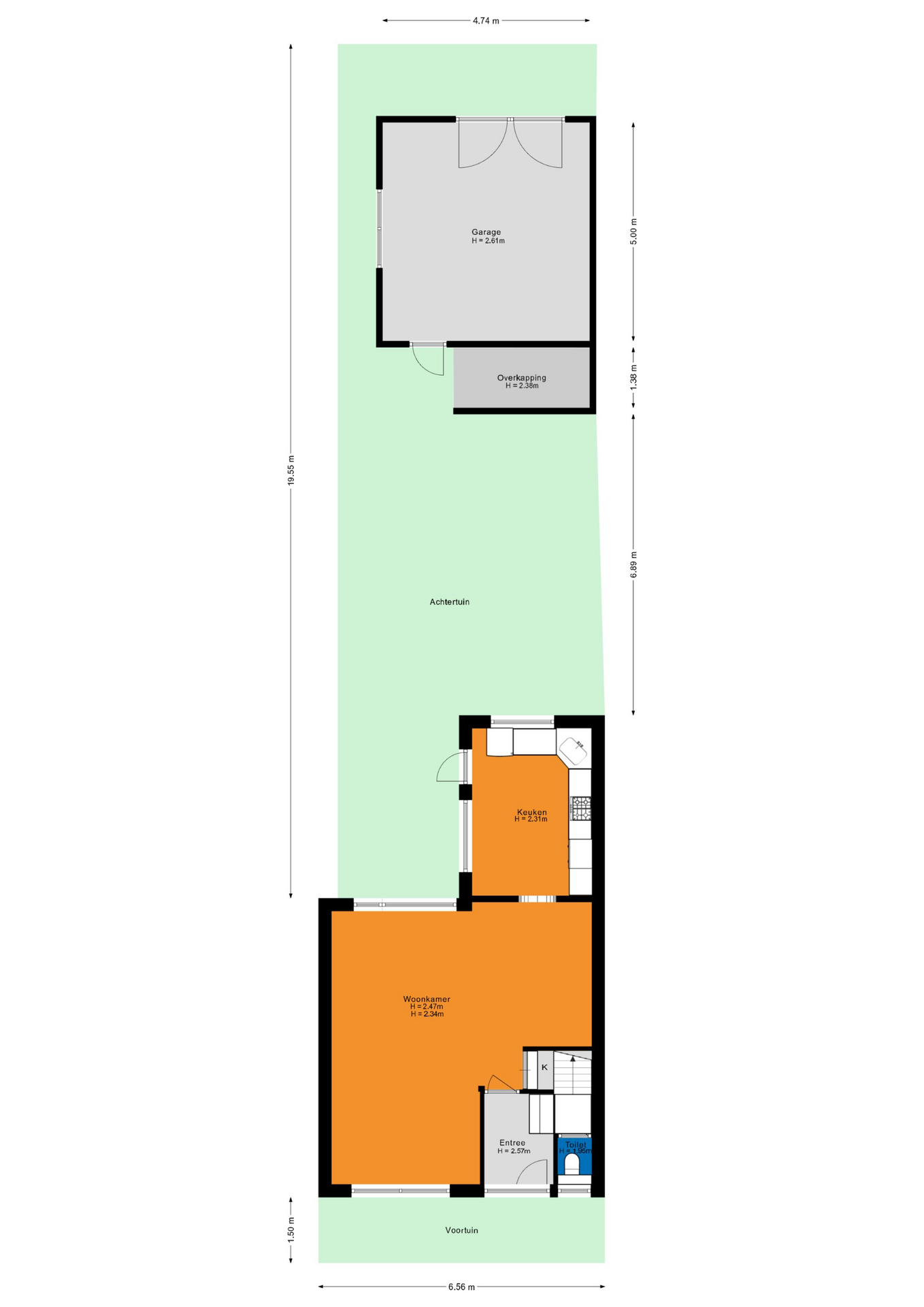 - Ruime garage met plek voor een auto en/of fietsen achter in de tuin;
