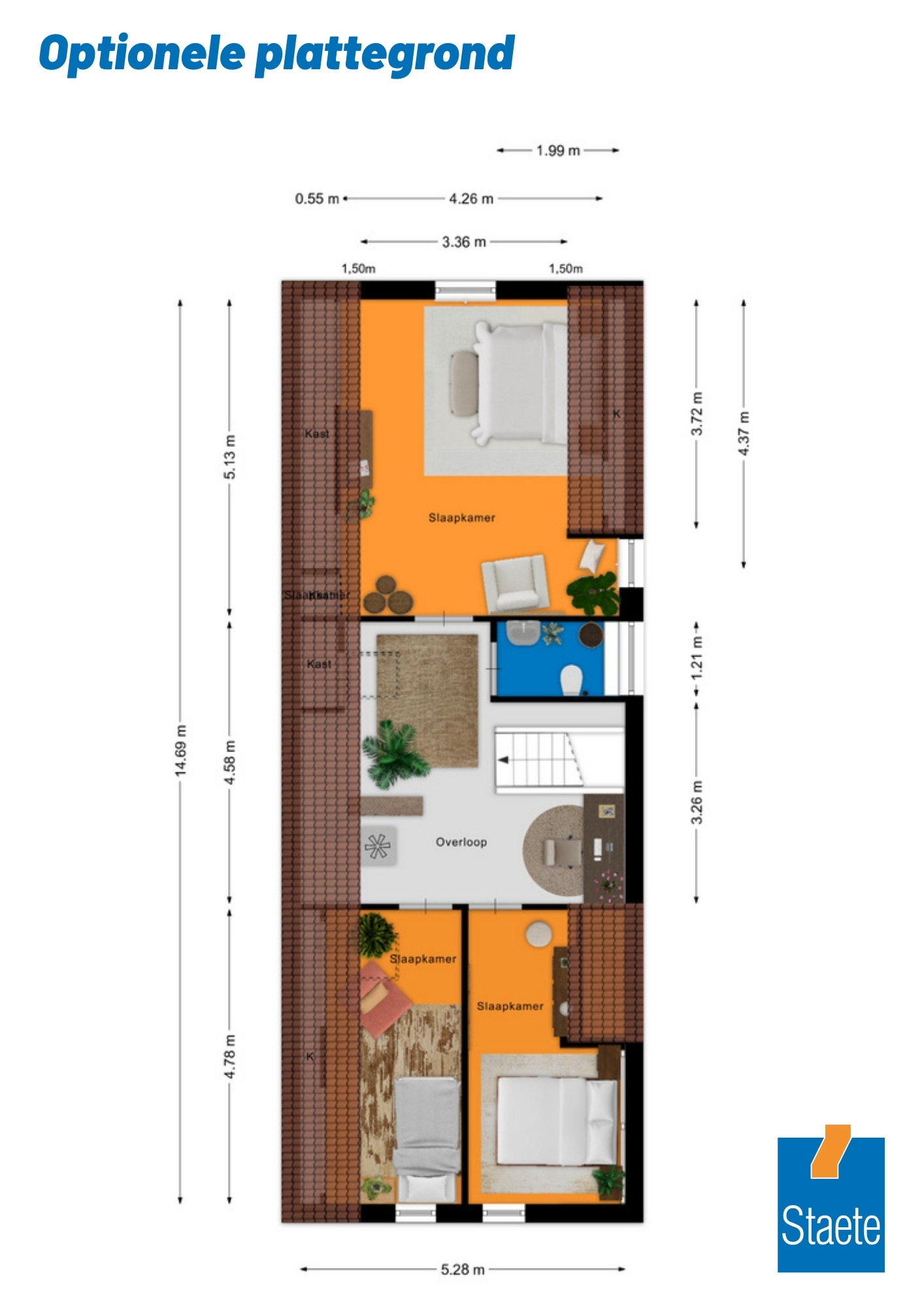 - De slaapkamer aan de voorzijde is op te splitsen in twee aparte slaapkamers;