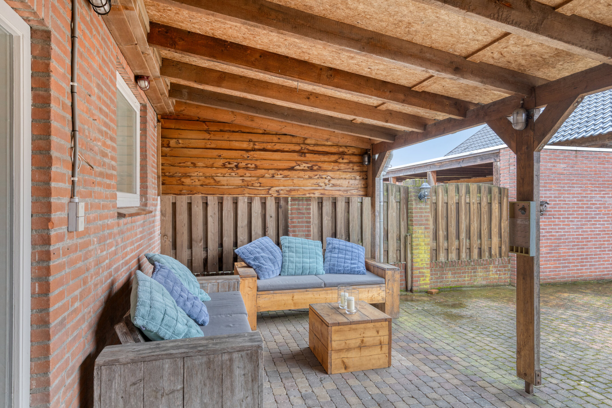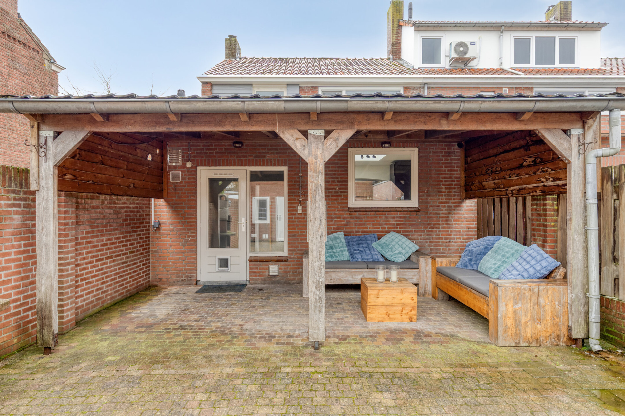 - Tuin met overkapping en achterom;
