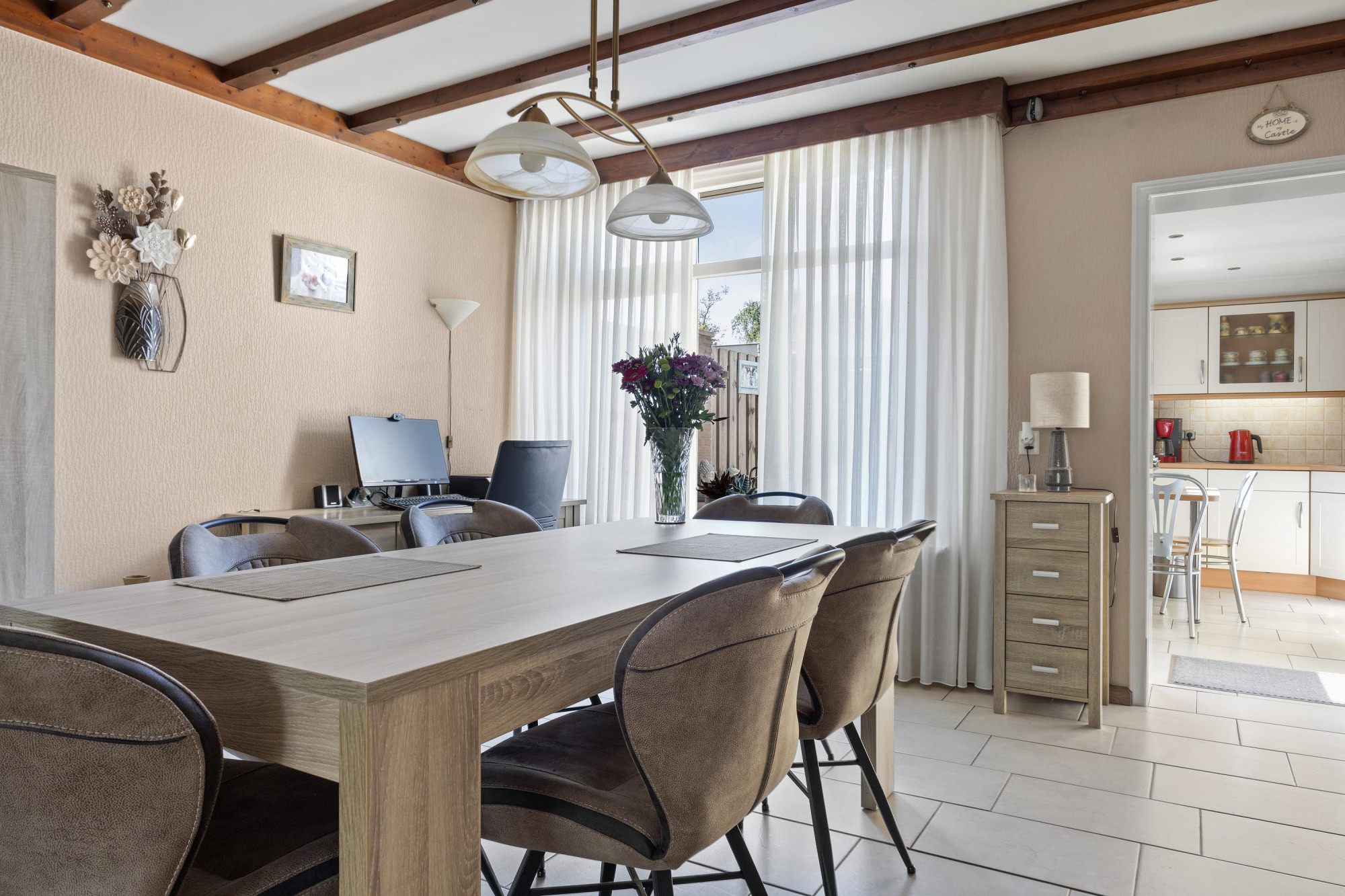 Dit gezellige huis biedt een fijne combinatie van licht, ruimte en privacy! In de woonkamer, waar je geniet van veel daglicht, creëer je een knusse sfeer in een handomdraai, dankzij de haard. De eethoek nodigt uit tot heerlijke diners met vrienden en familie. Hoewel de keuken wat gedateerd is momenteel, kun je hier de lekkerste maaltijden bereiden. Het biedt jou ook de kans om jouw stempel te drukken en het helemaal eigen te maken. Je beschikt hier over drie slaapkamers. Wil je liever een extra (slaap)kamer? Dan kun je eenvoudig een vaste trap realiseren en daarmee een vierde slaapkamer.