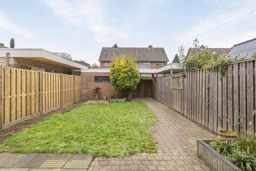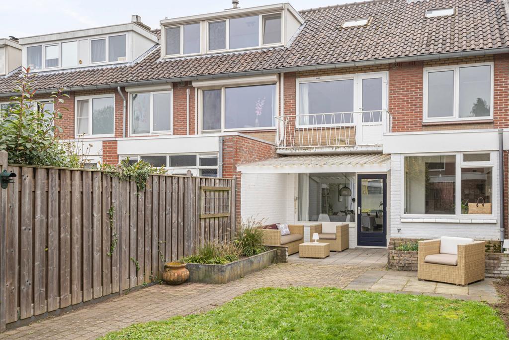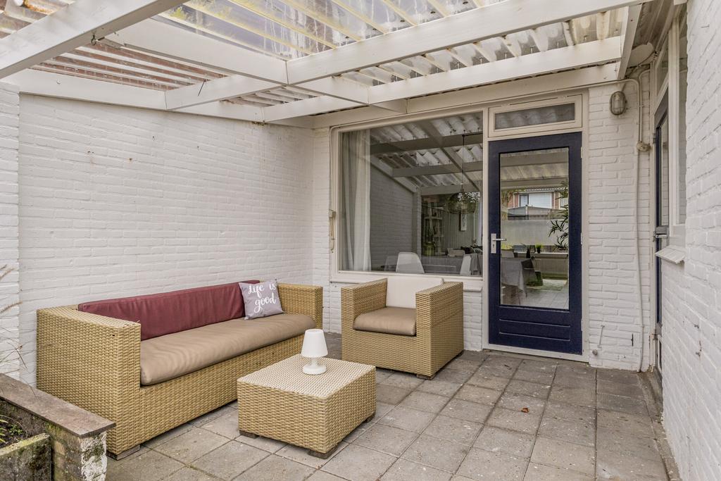 De tuin is gelegen op het zuidwesten, hier geniet je dus van veel zonuren. Met een royale overkapping kun je hier van elk seizoen profiteren, of het nu een zomerse barbecue is of een knusse avond onder een warme plaid in de herfst. Een achterom en een schuurtje maken de buitenruimte compleet – ideaal voor fietsen, gereedschap of misschien wel die eigen werkplek.