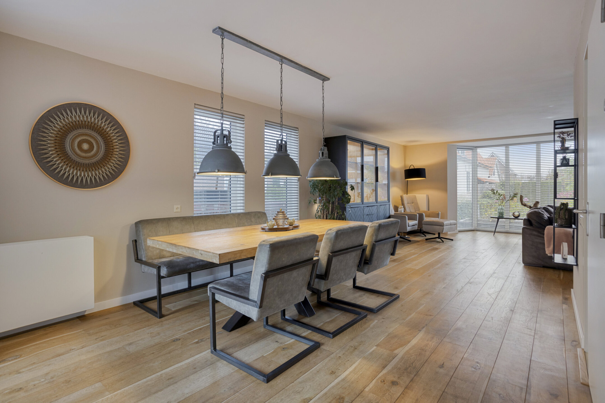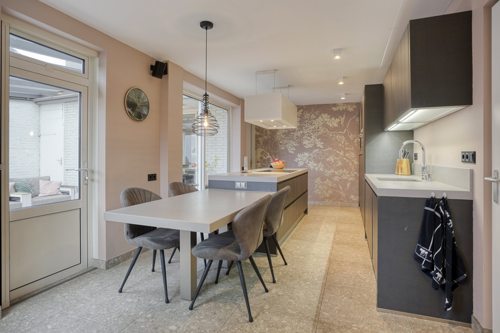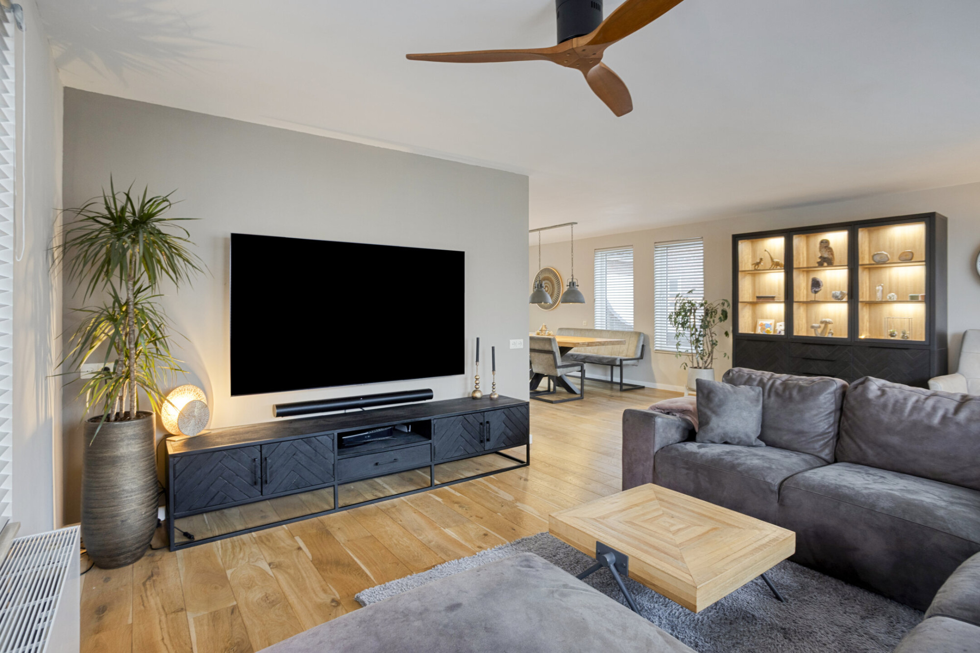 De woning verwelkomt je met een ruime, lichte woonkamer waar grote raampartijen zorgen voor een gezellige sfeer en een fijne lichtinval. Aansluitend bevindt zich de moderne keuken, uitgerust met een composiet aanrechtblad, een royaal kookeiland en alle benodigde inbouwapparatuur. Een ideale plek voor lange diners, gezellige borrels en dagelijks gemak.