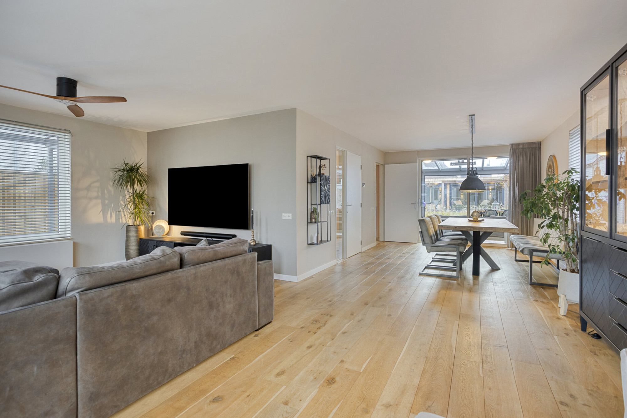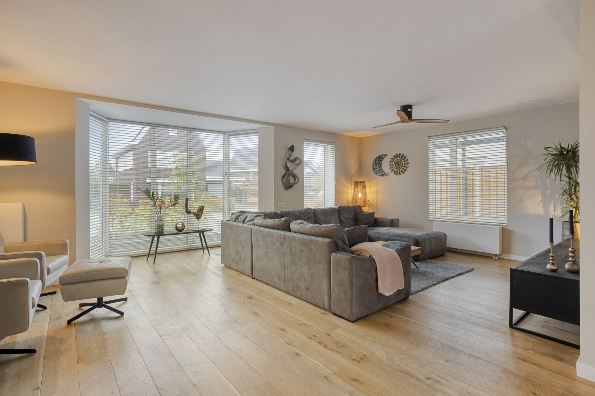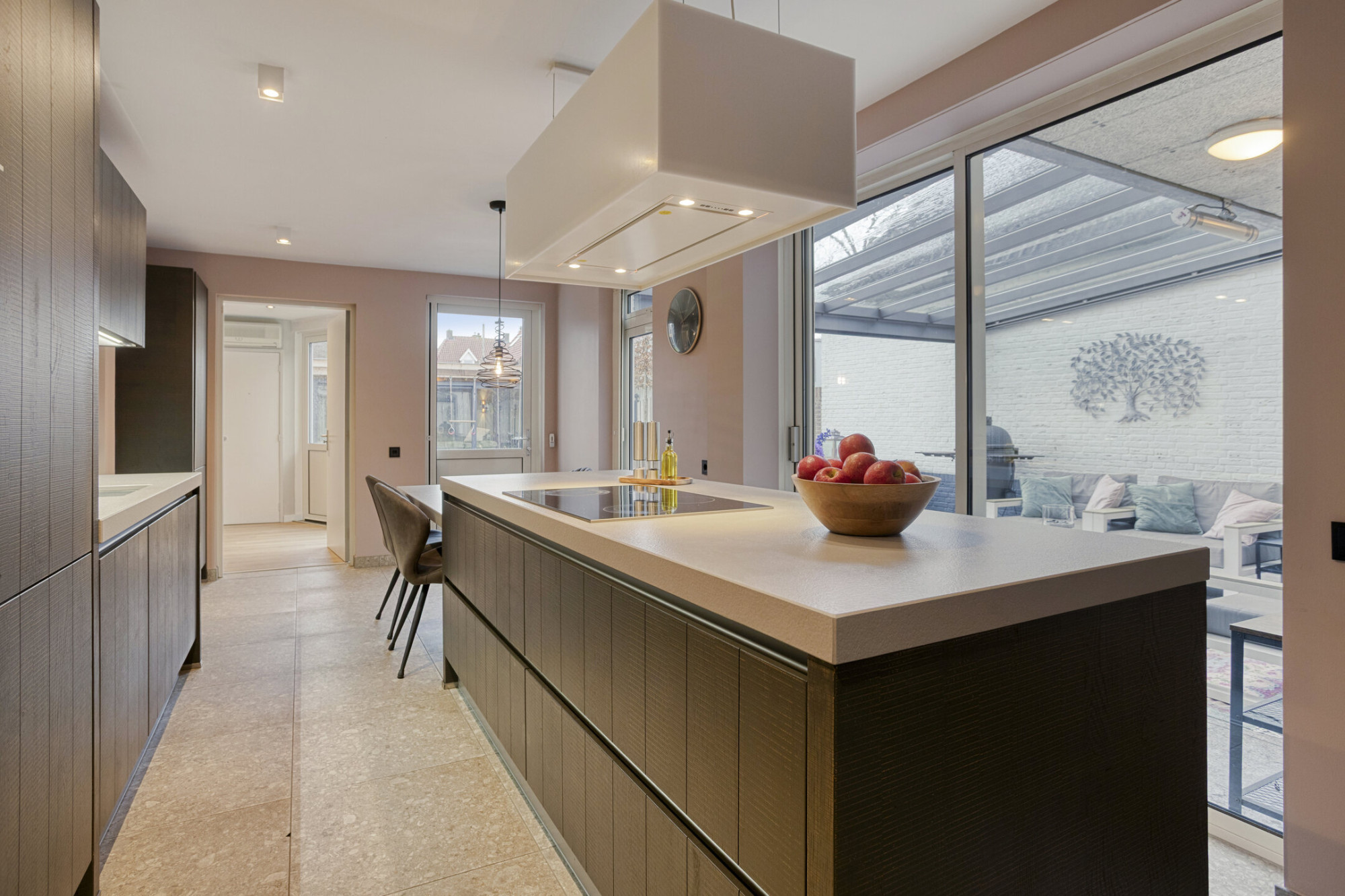 De woning verwelkomt je met een ruime, lichte woonkamer waar grote raampartijen zorgen voor een gezellige sfeer en een fijne lichtinval. Aansluitend bevindt zich de moderne keuken, uitgerust met een composiet aanrechtblad, een royaal kookeiland en alle benodigde inbouwapparatuur. Een ideale plek voor lange diners, gezellige borrels en dagelijks gemak.