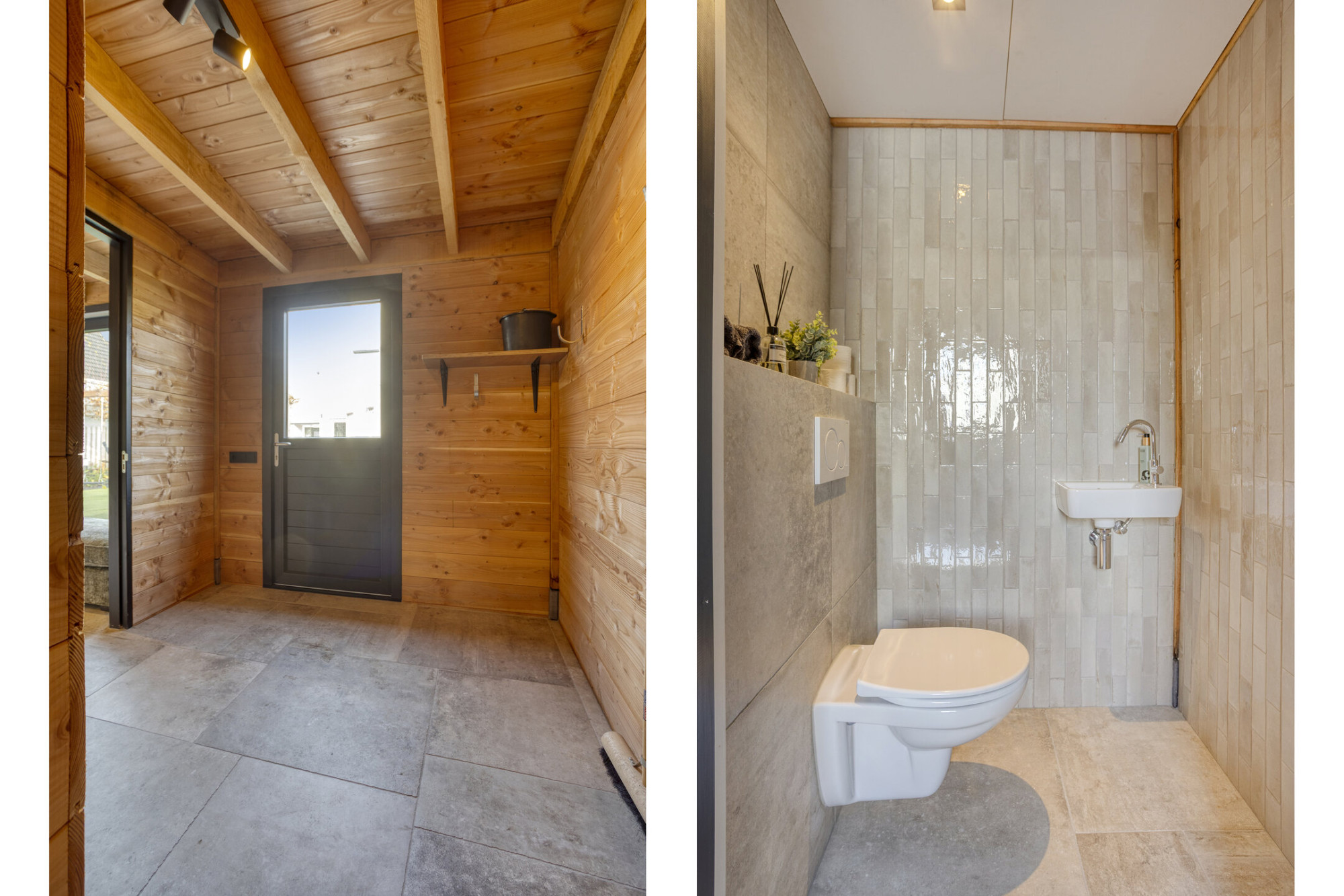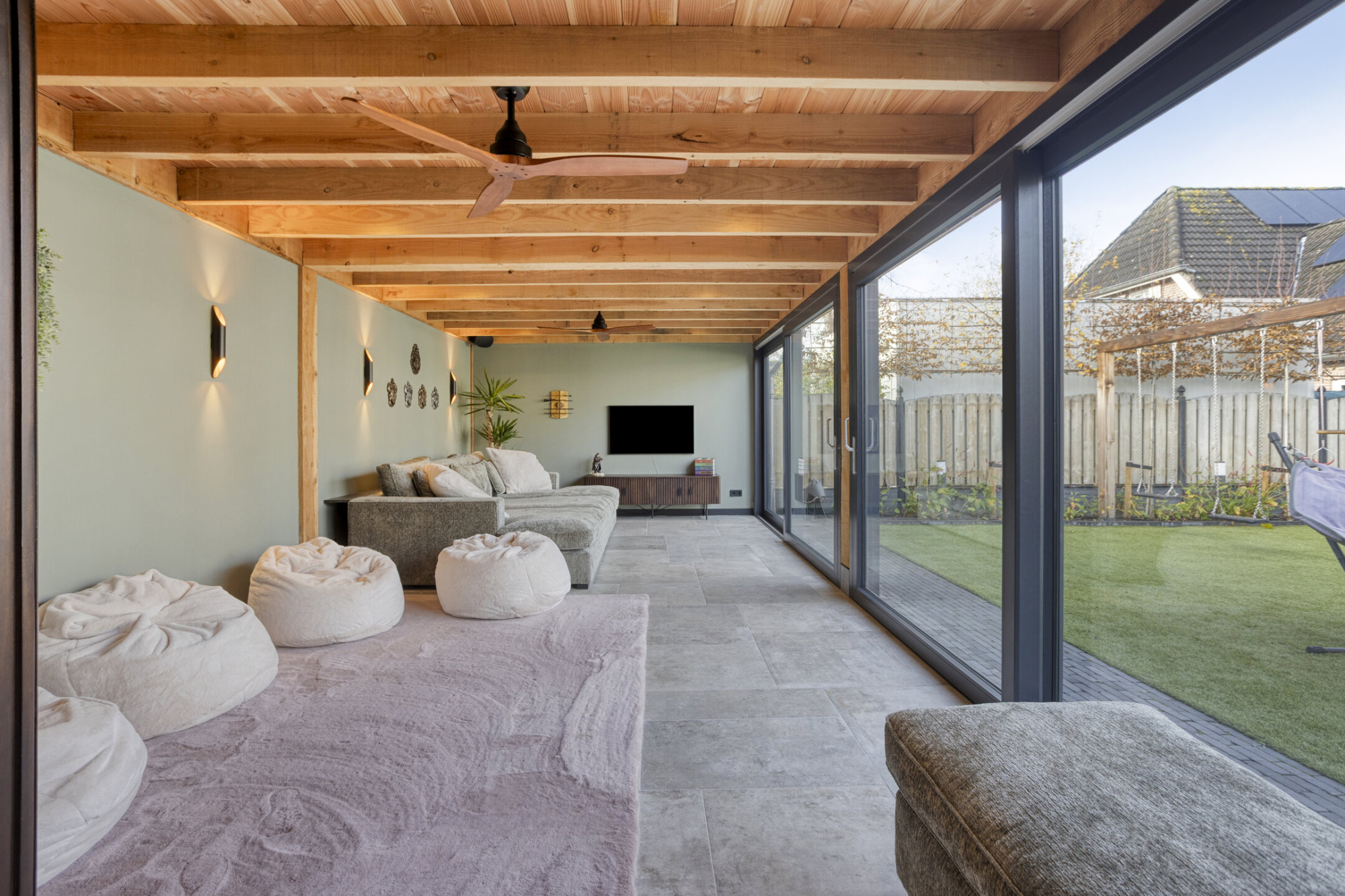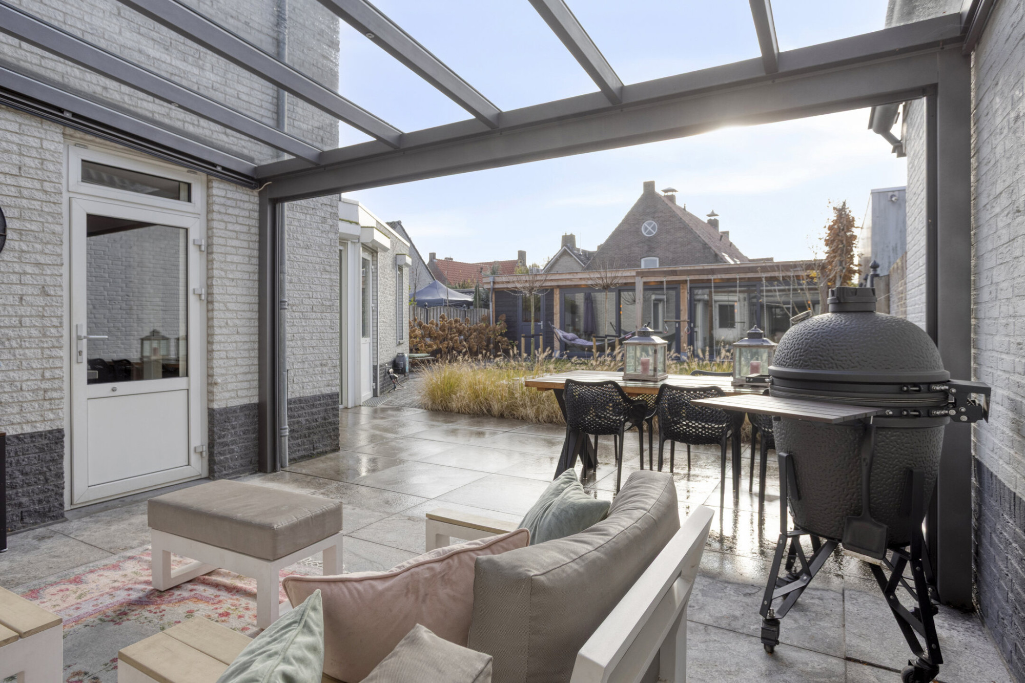 - Zonnige tuin op het zuiden met overkapping, luxe tuinhuis en achterom;
