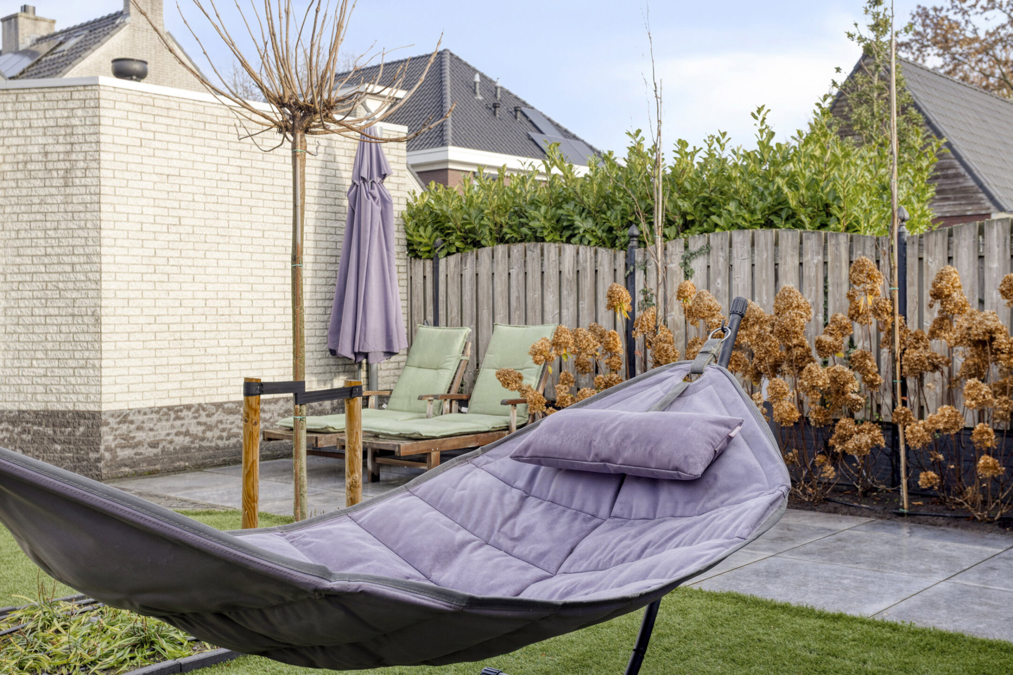 De tuin op het zuiden is een heerlijke plek om te ontspannen, te ontbijten in de zon of lange zomeravonden door te brengen. Het luxe tuinhuis geeft extra mogelijkheden, bijvoorbeeld als werkruimte, atelier of fijne loungeplek. De eigen oprit en garage maken het wooncomfort compleet en zorgen ervoor dat je altijd makkelijk kunt parkeren.