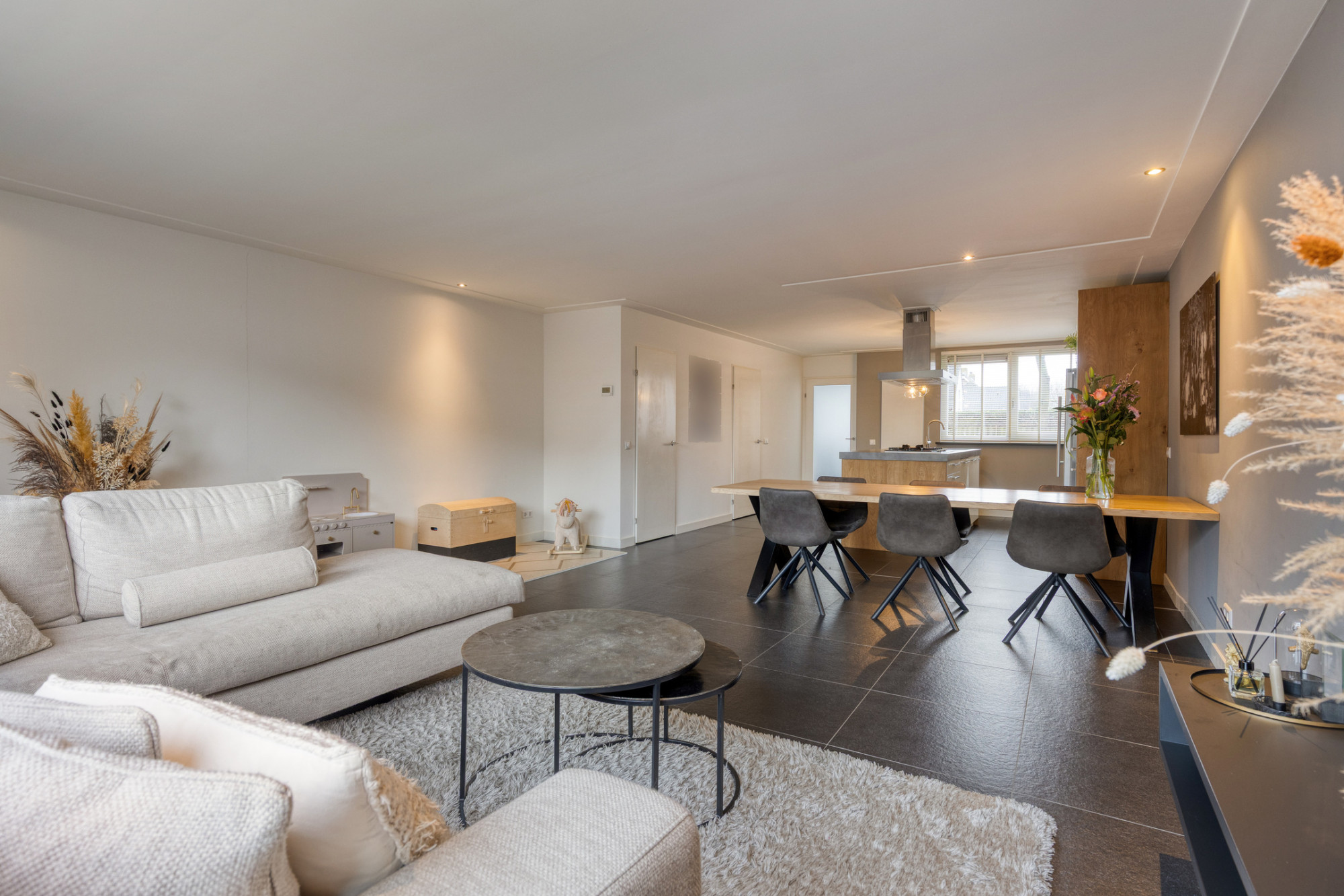 - Open leefruimte met veel lichtinval;