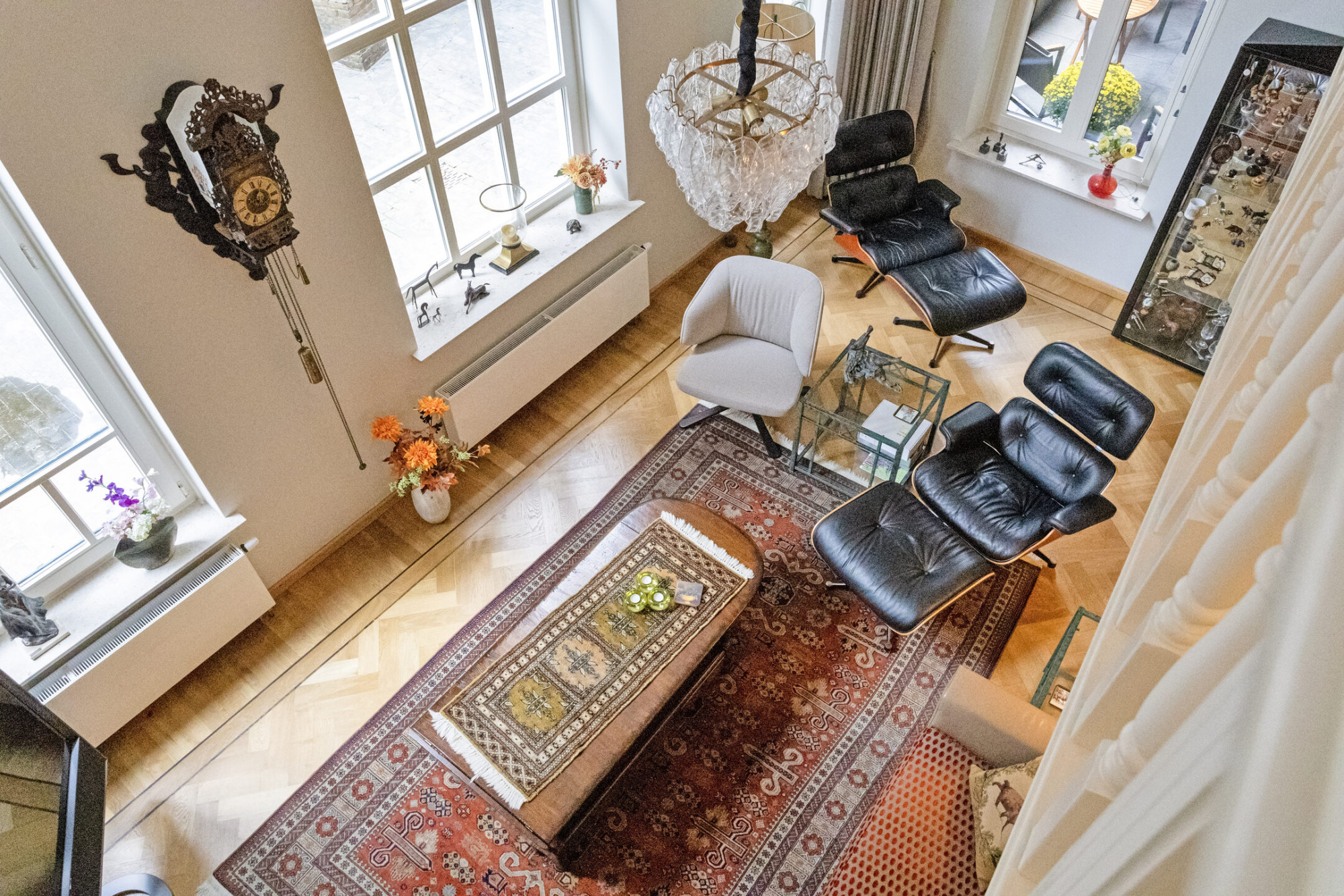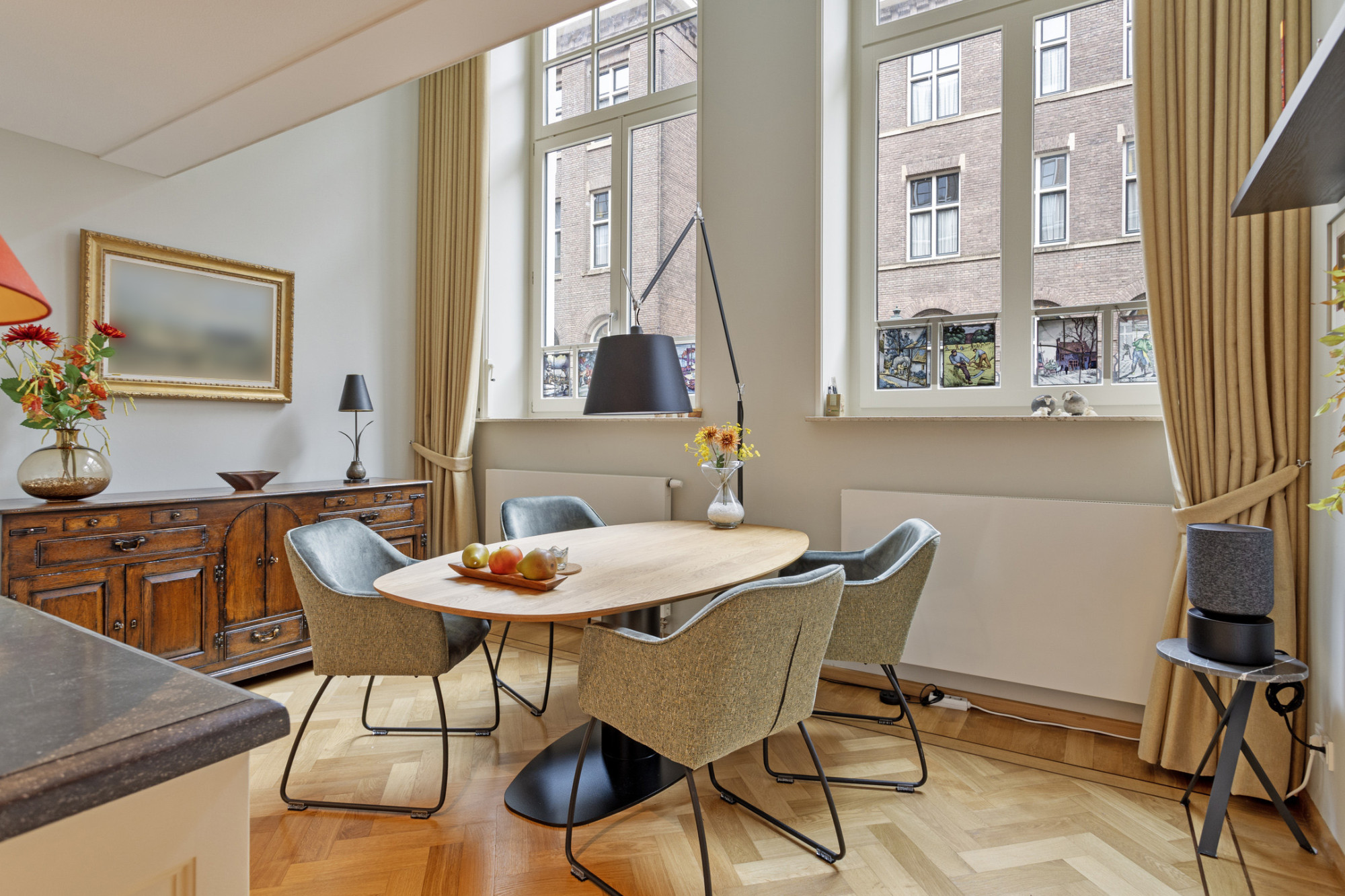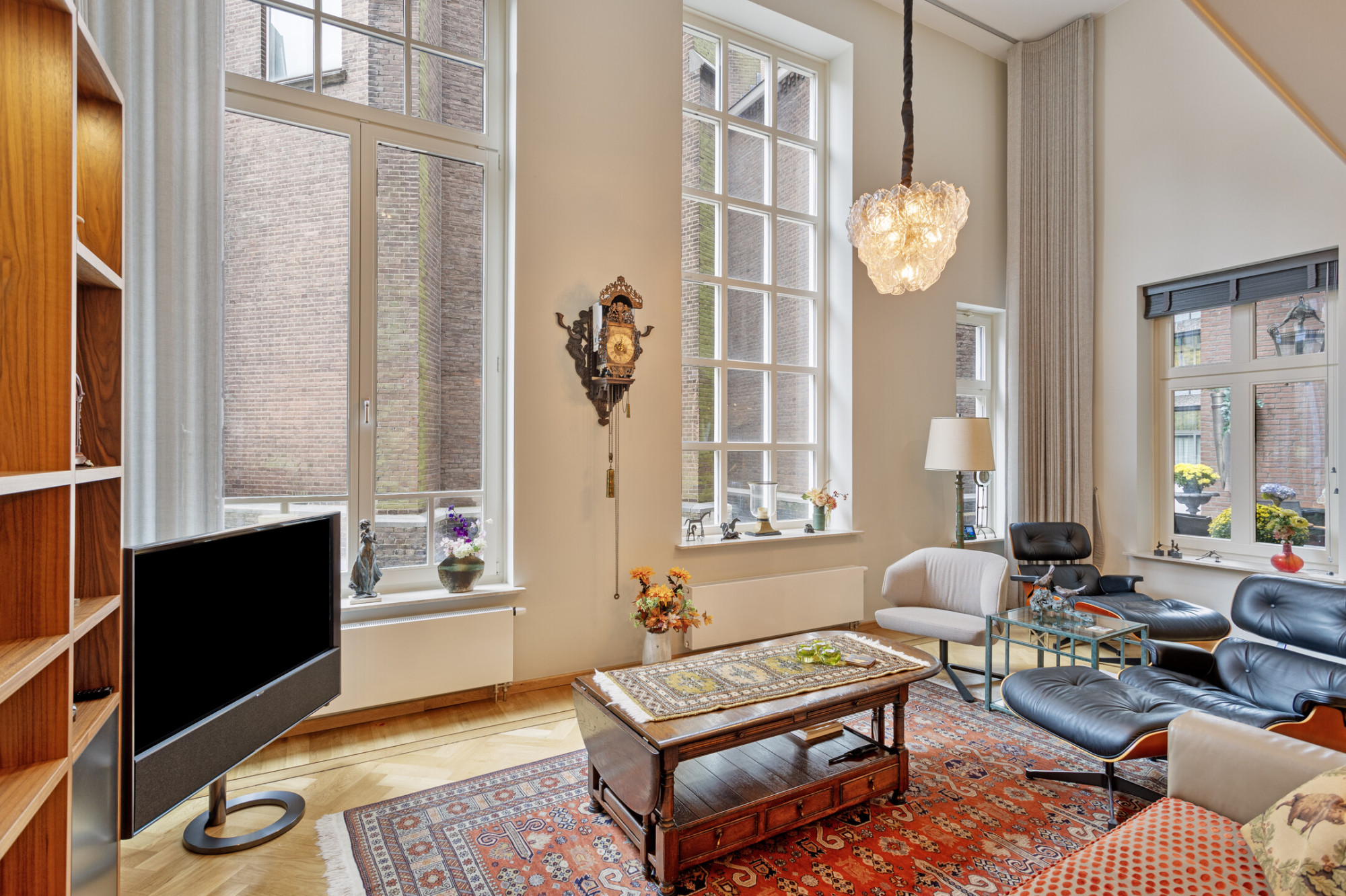 - Hoge plafonds en grote raampartijen;