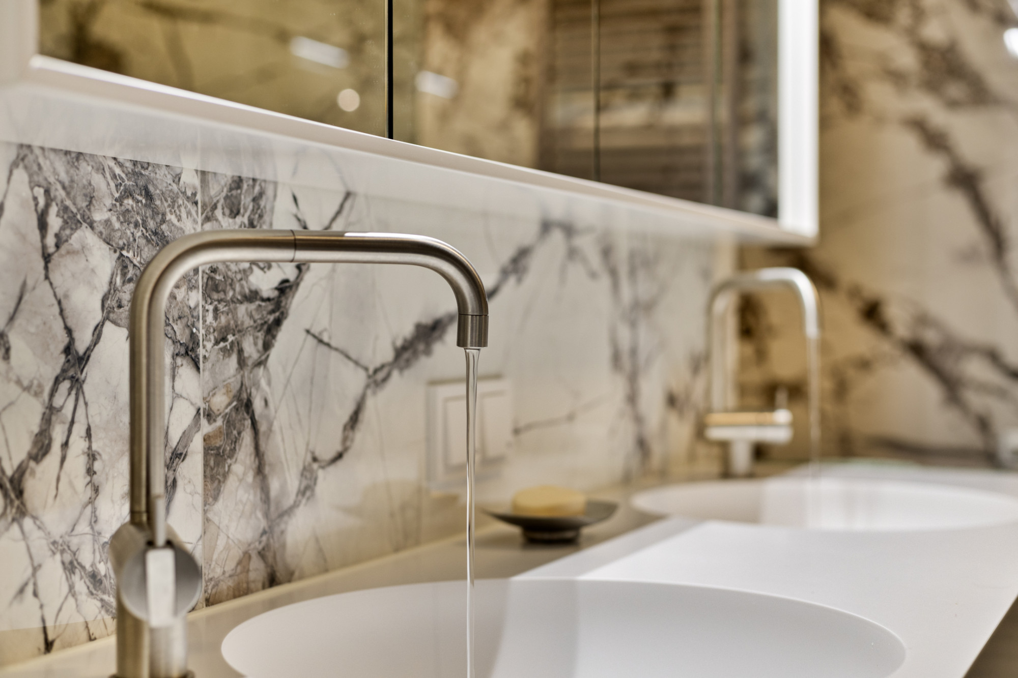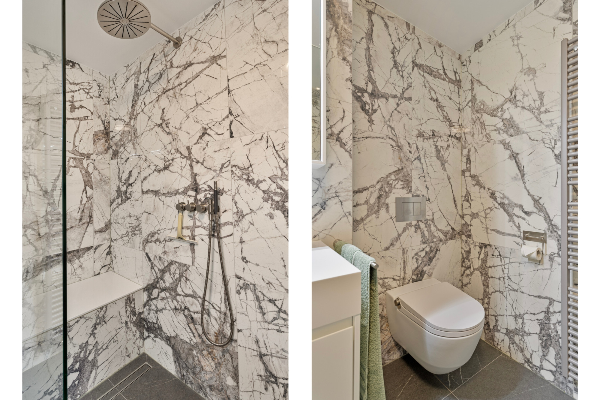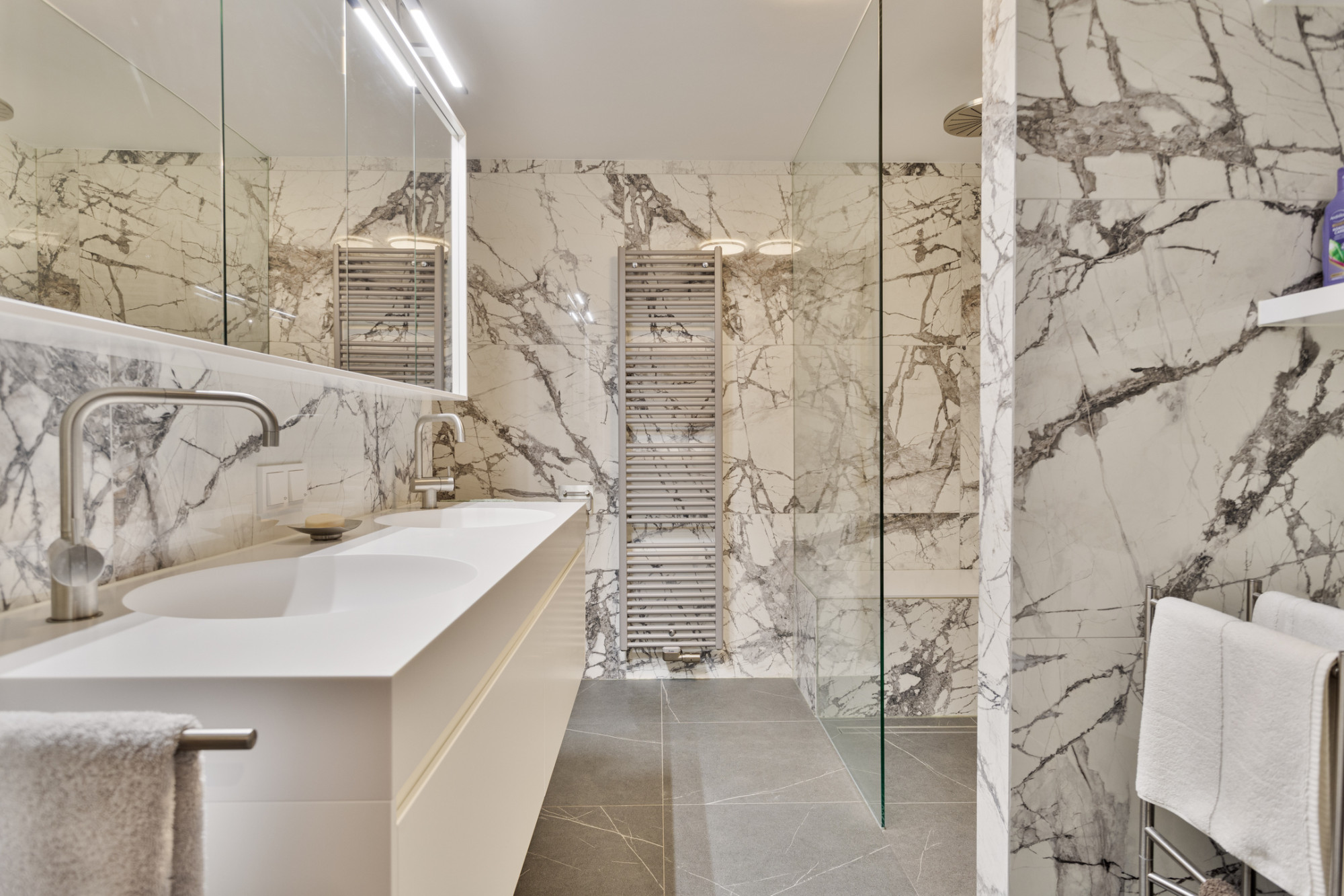 - Luxe badkamer (2022) met dubbele wastafel en inloopdouche;