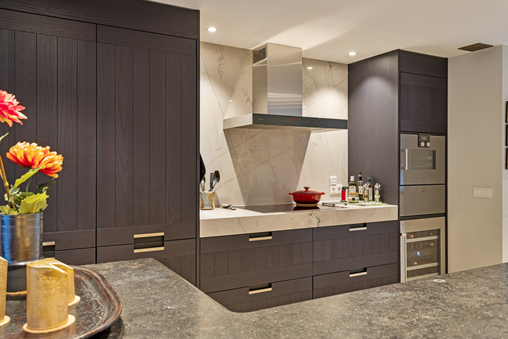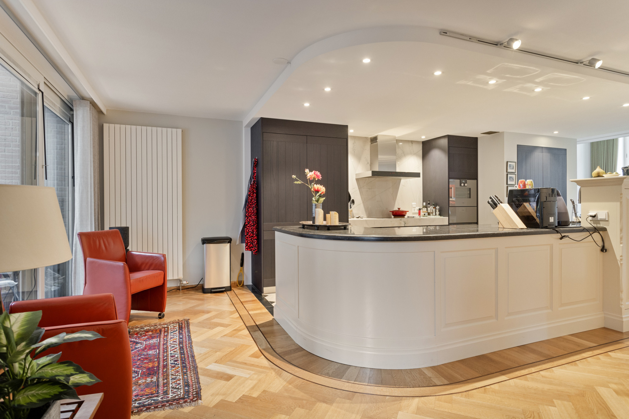 - Grote open keuken (2022) met kookeiland en wijnklimaatkast;