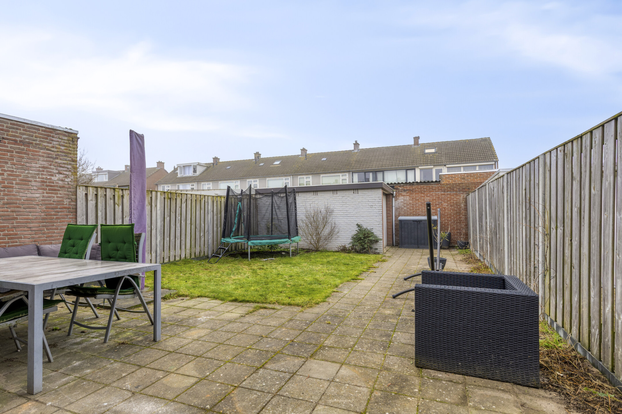 De ruime tuin op het westen vormt een heerlijke plek om tot rust te komen. Door de gunstige ligging geniet je hier volop van de middag- en avondzon. Achter in de tuin bevindt zich een praktische berging, ideaal voor fietsen en tuingereedschap.