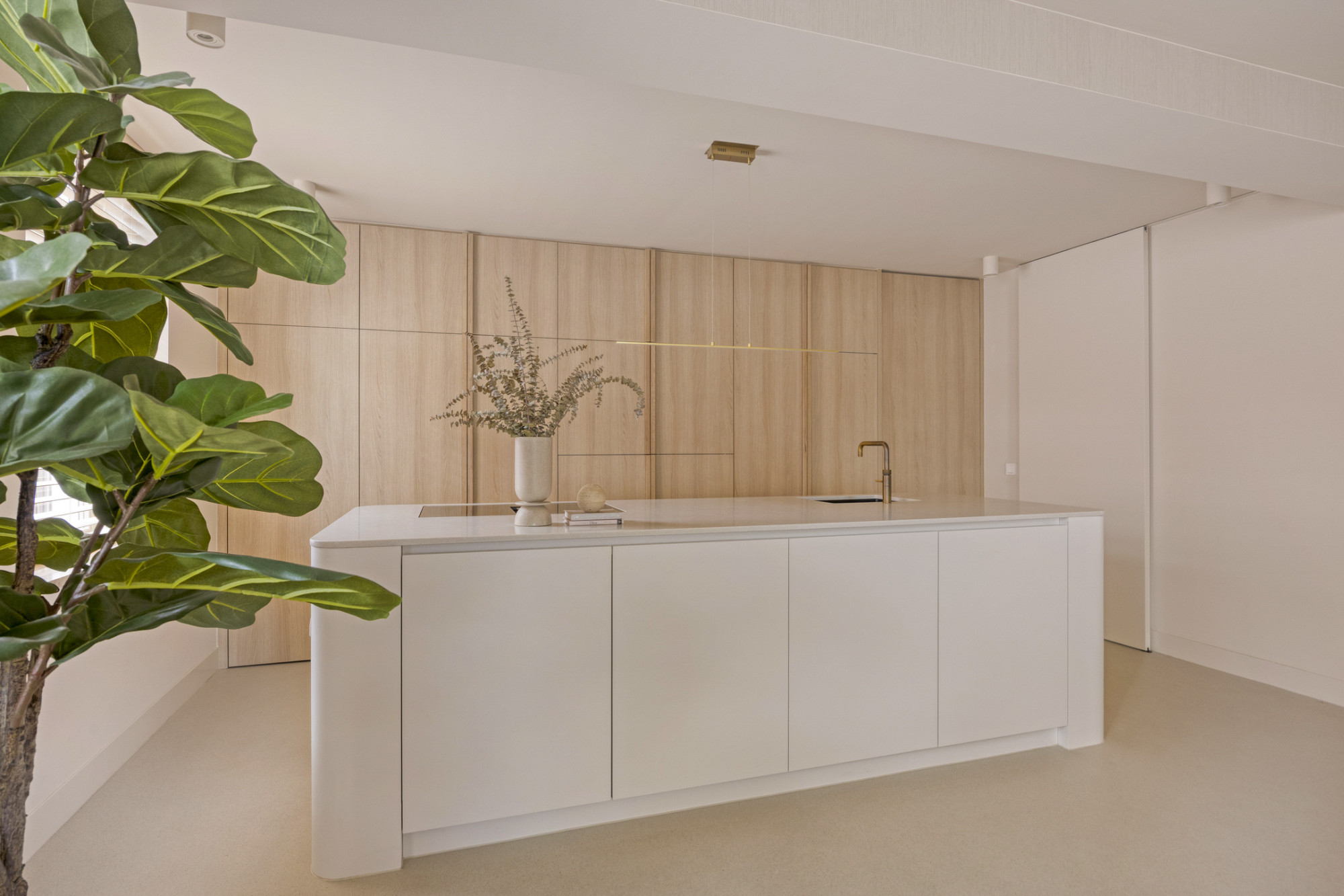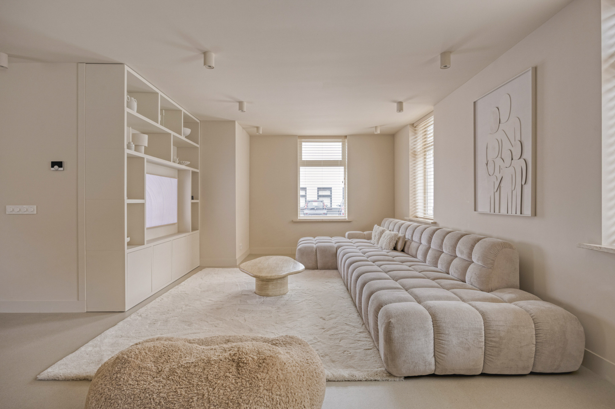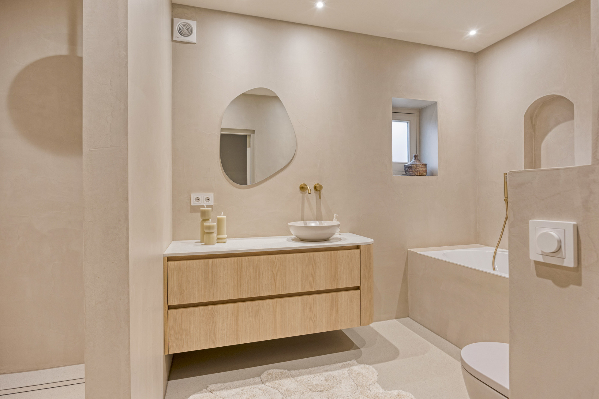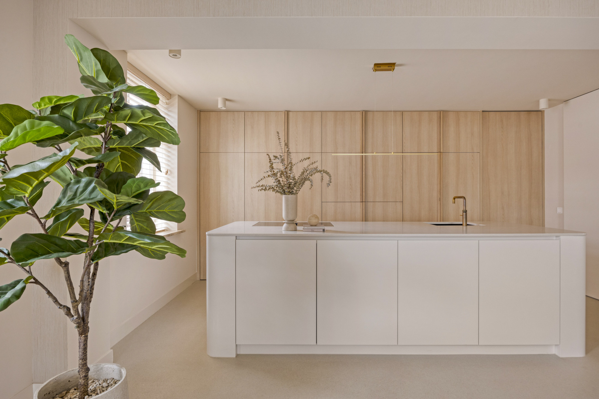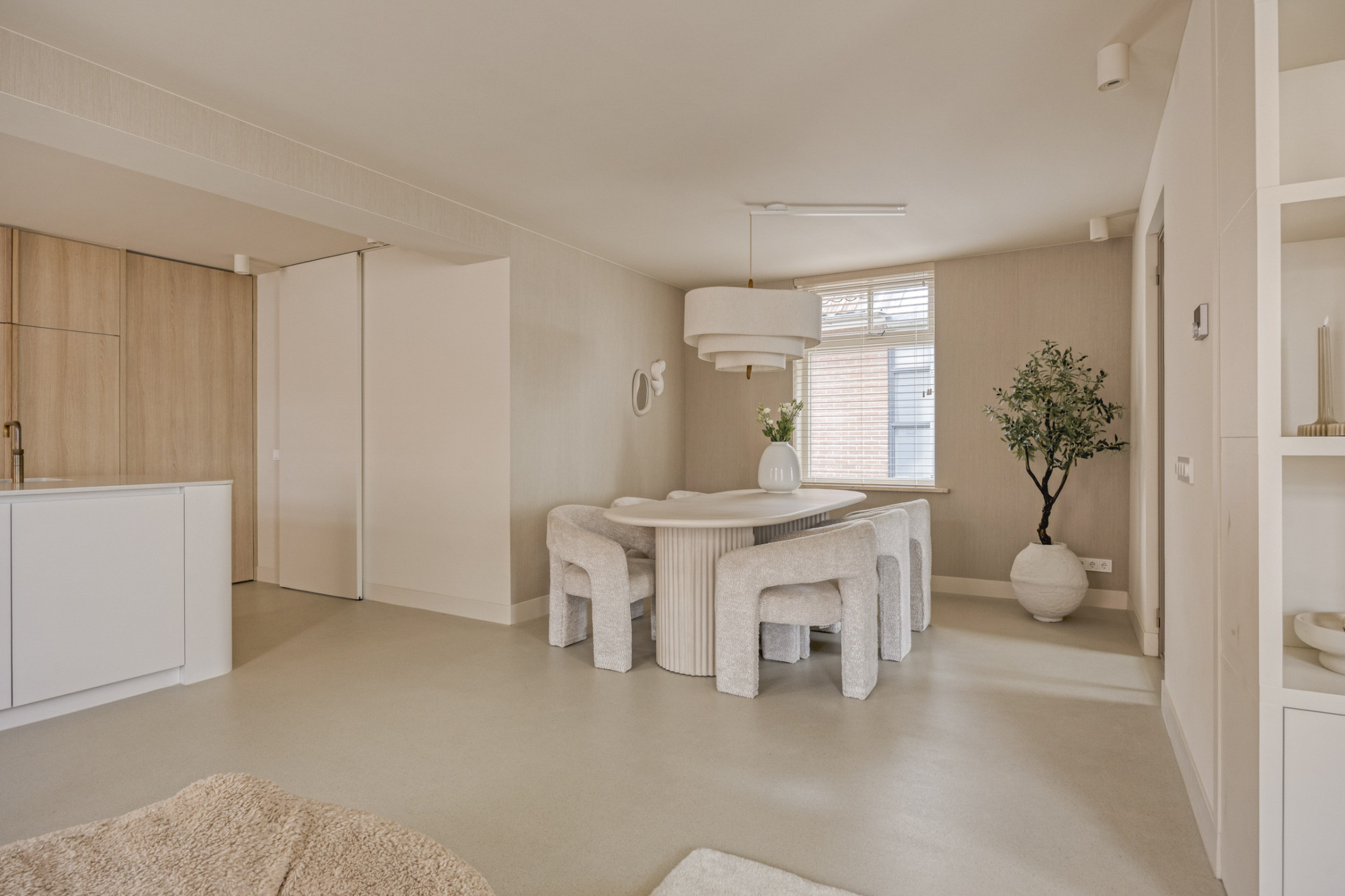 Bij binnenkomst ervaar je meteen de luxe uitstraling: een prachtige troffelvloer en fraaie details zetten de toon. De royale woonkamer is heerlijk licht dankzij de vele ramen en staat in verbinding met de open keuken. Deze keuken beschikt over moderne apparatuur, veel werk- en kastruimte en is een fijne plek voor een snelle maaltijd of uitgebreide diners. Alles is met oog voor detail afgewerkt en dat zie je ook terug in deze fantastische keuken.