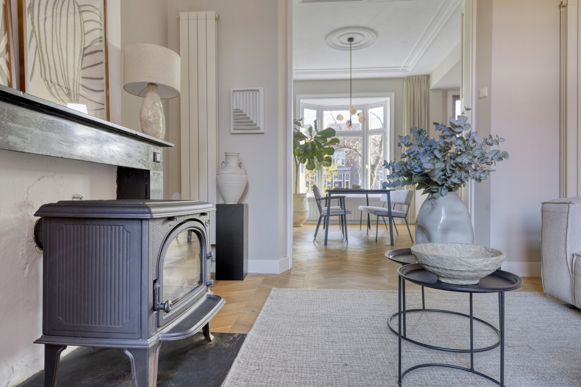 - Gezellige woonkamer die fijn aansluit op de eetruimte;