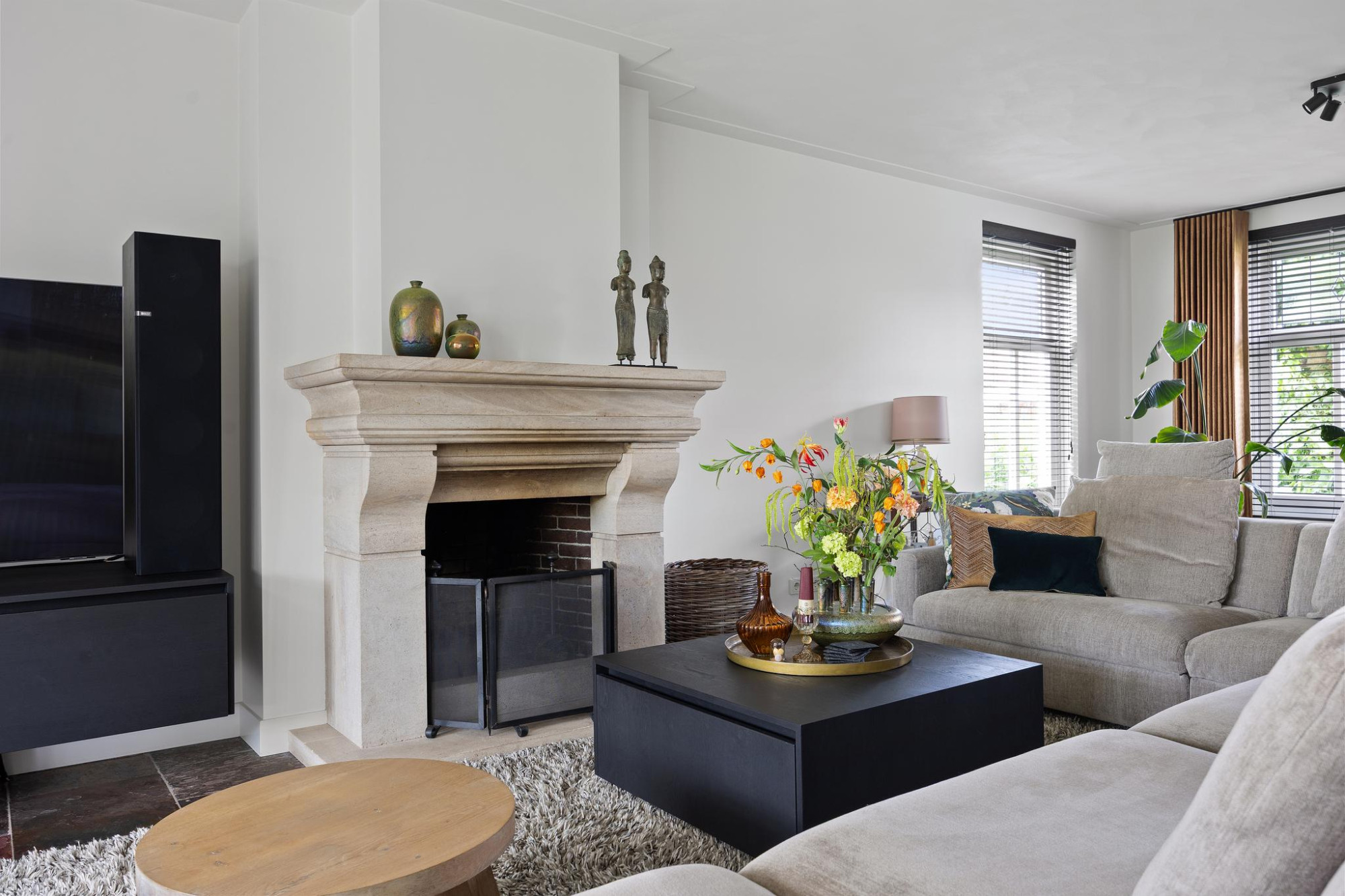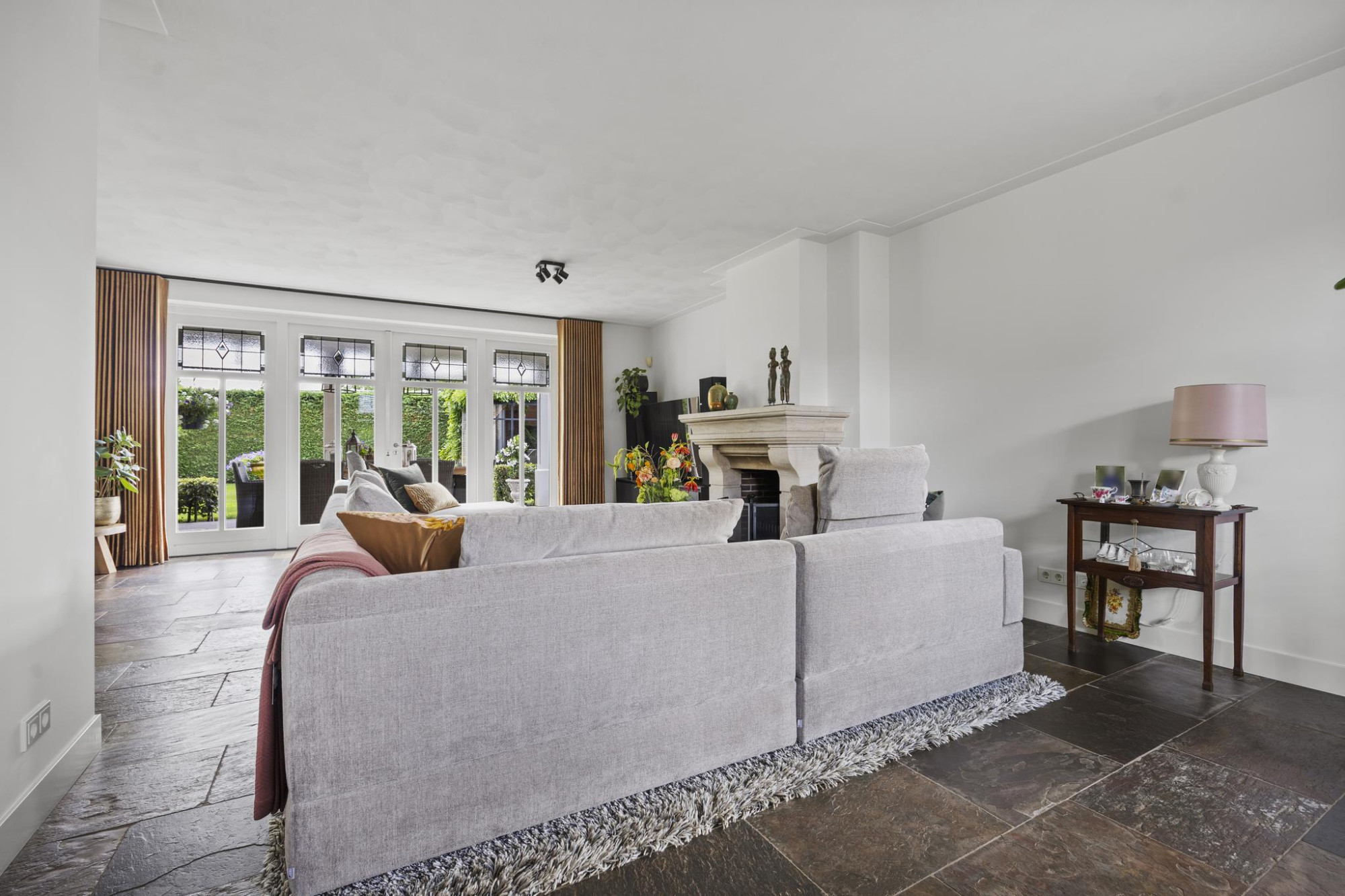 - Ruime, lichte woonkamer met open haard;