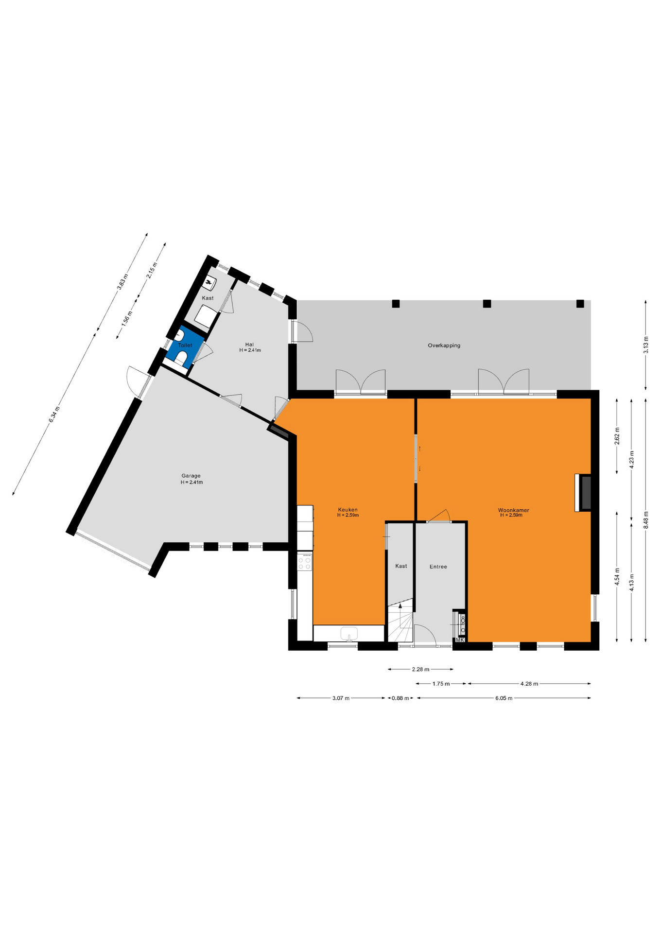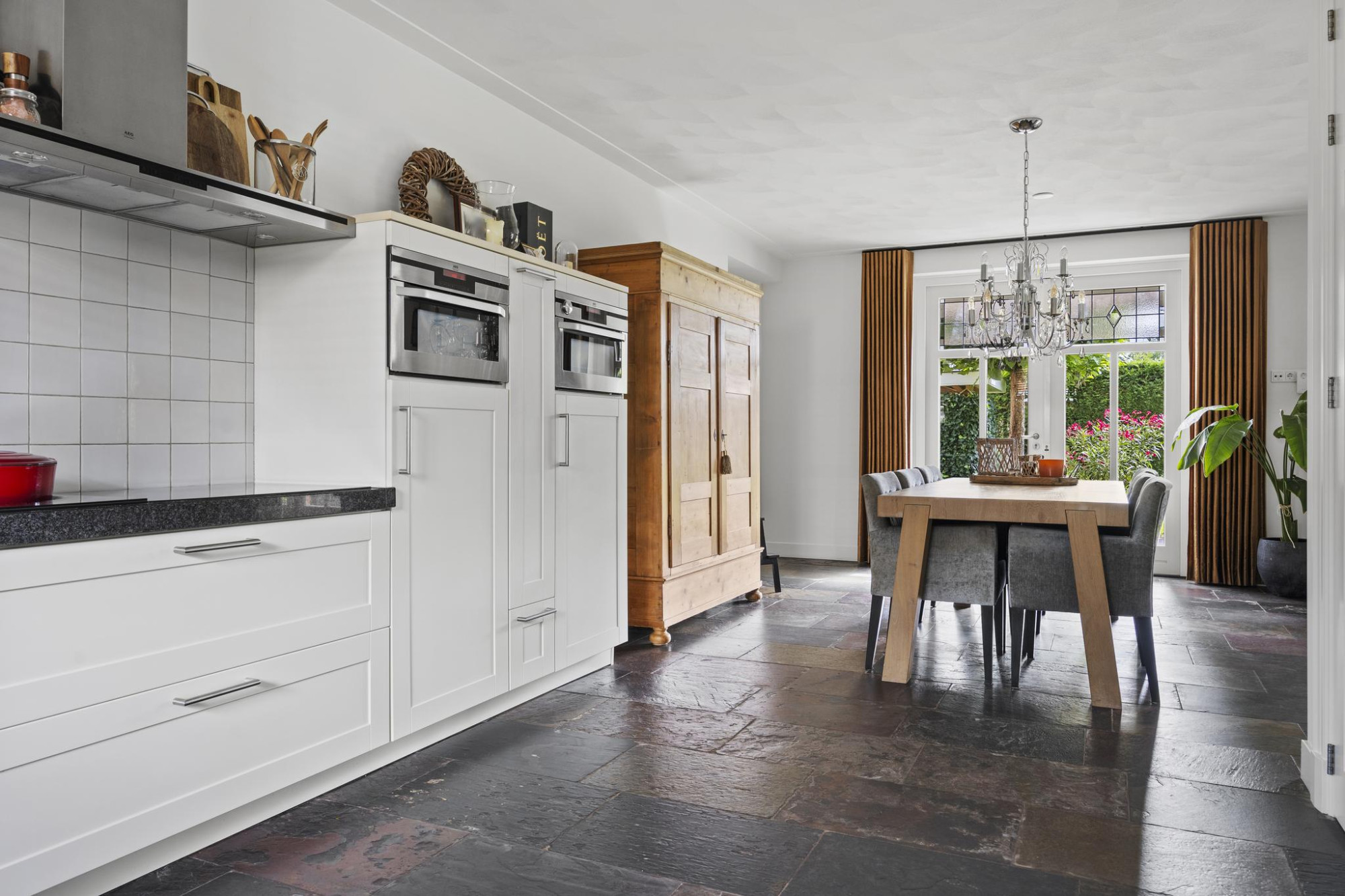 - Keuken en woonkamer zijn voorzien van dubbele deuren naar de tuin;