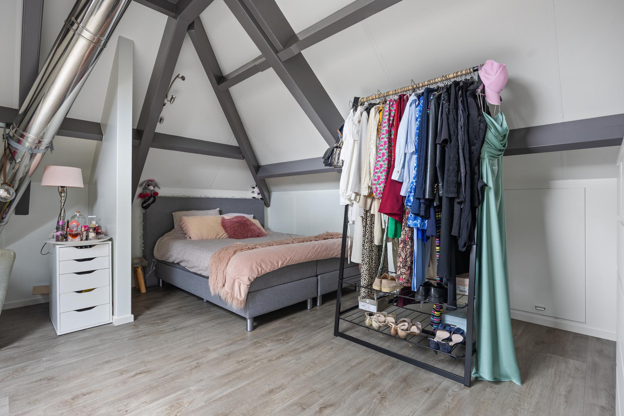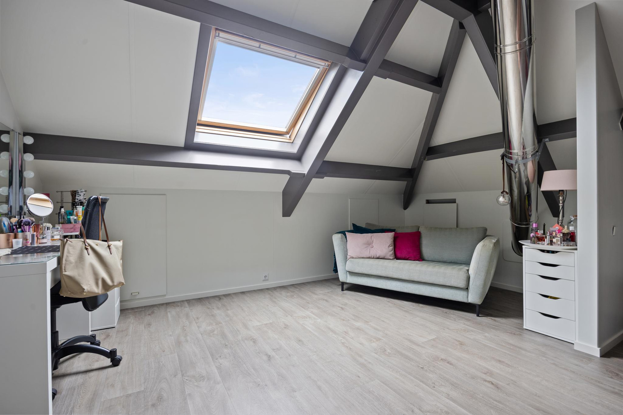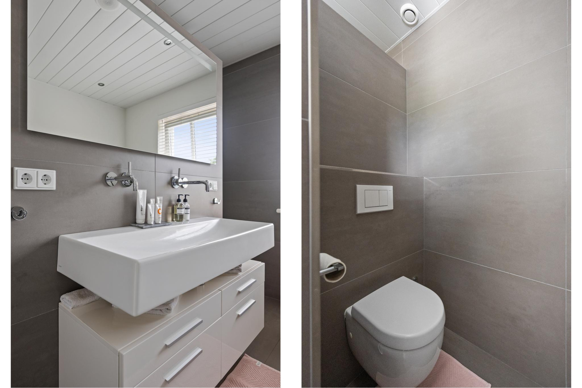 Boven vind je vijf ruime slaapkamers, met ieder hun eigen sfeer. Ideaal voor een gezin, werken aan huis of logees. In de badkamer kom je helemaal tot rust na een lange werkdag. Je hebt hier een ligbad, dubbele wastafel én een ruime inloopdouche met sunshower. En ook hier geniet je van comfort dankzij de vloerverwarming, net zoals in de rest van het huis.