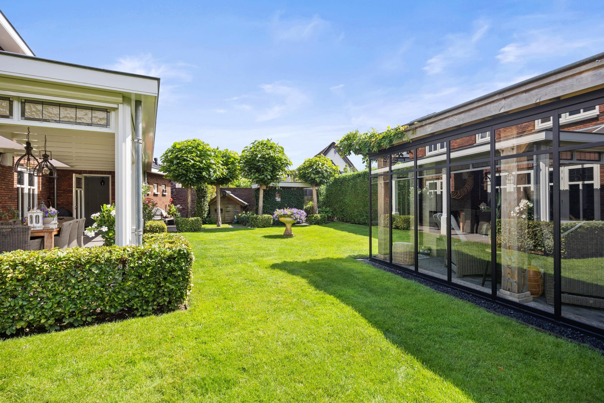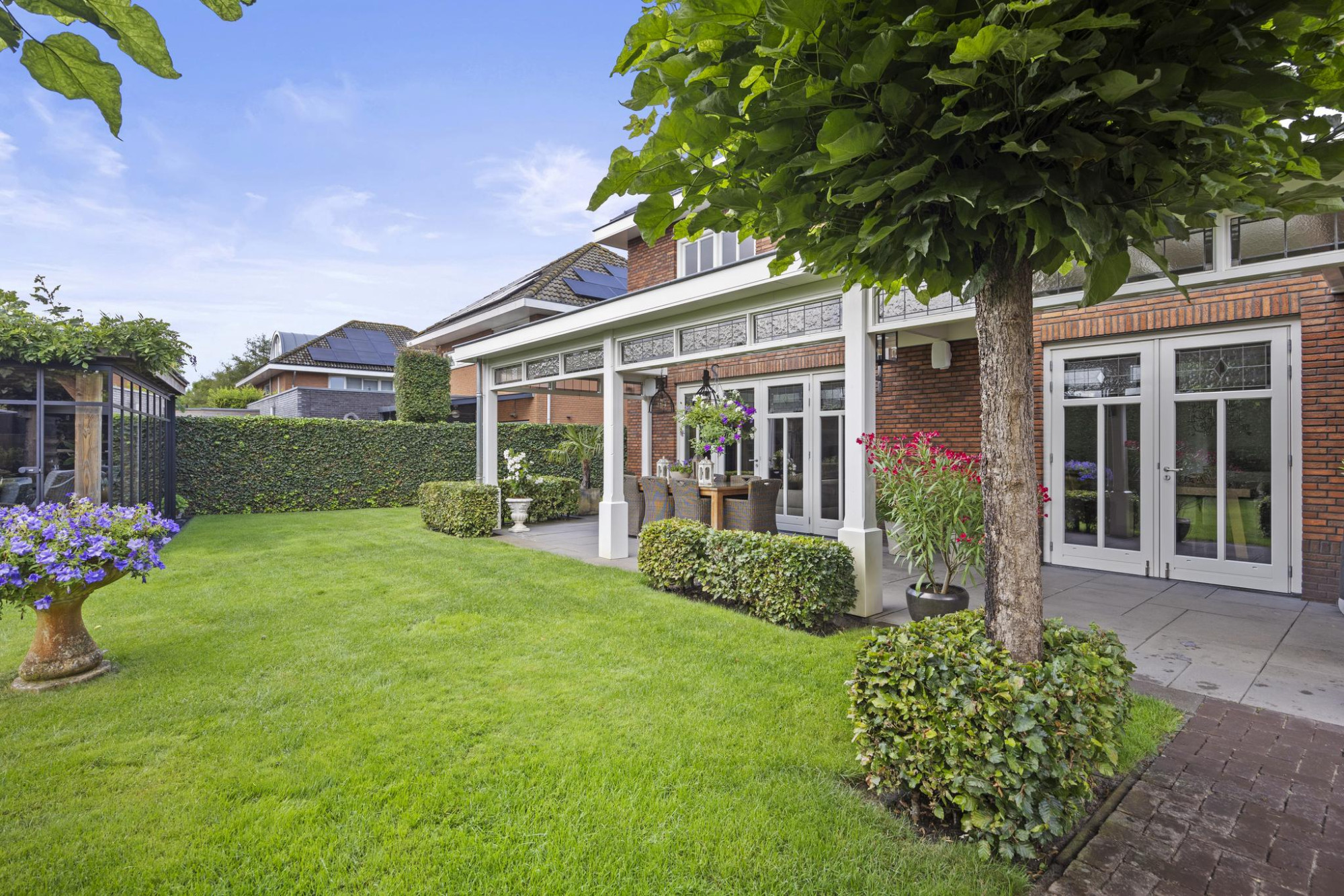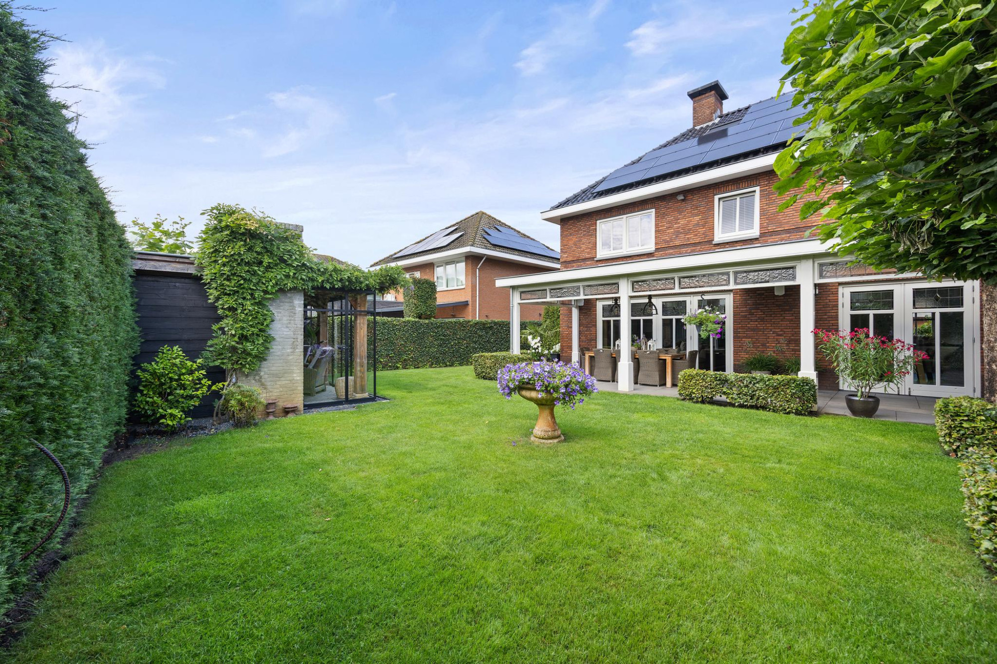 - Riante, groene achtertuin op het zuiden met overkapping;