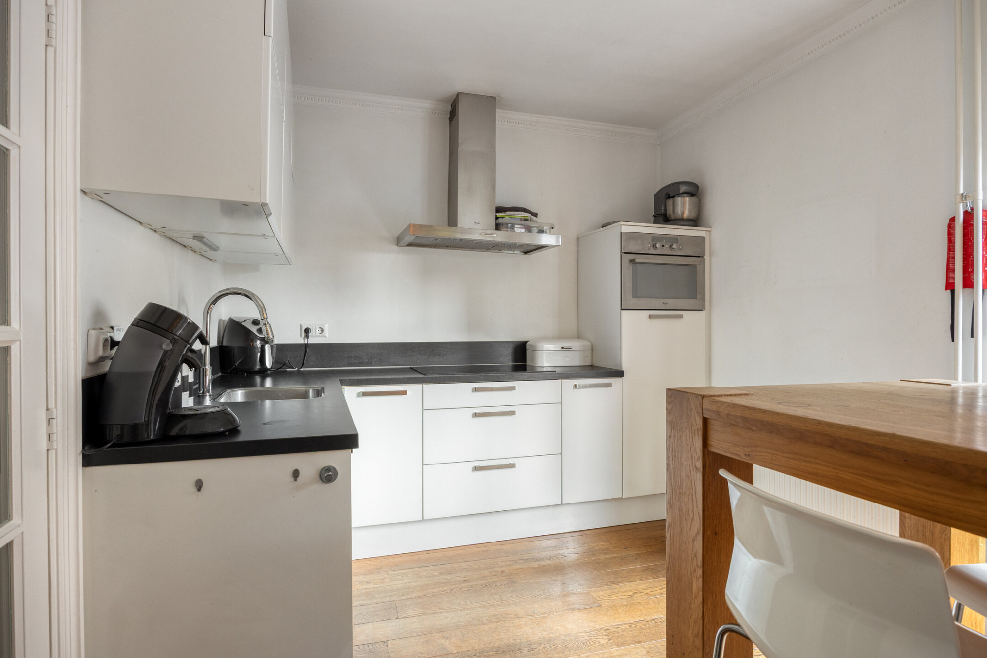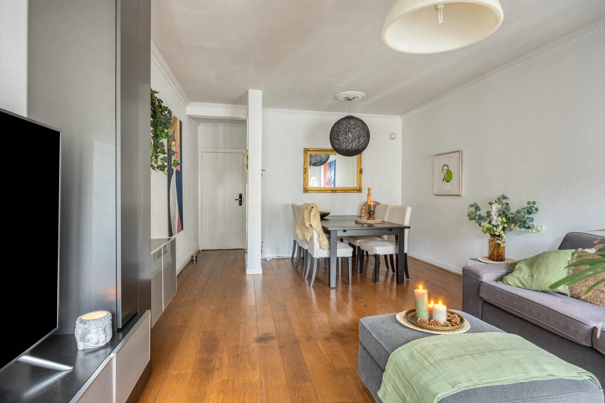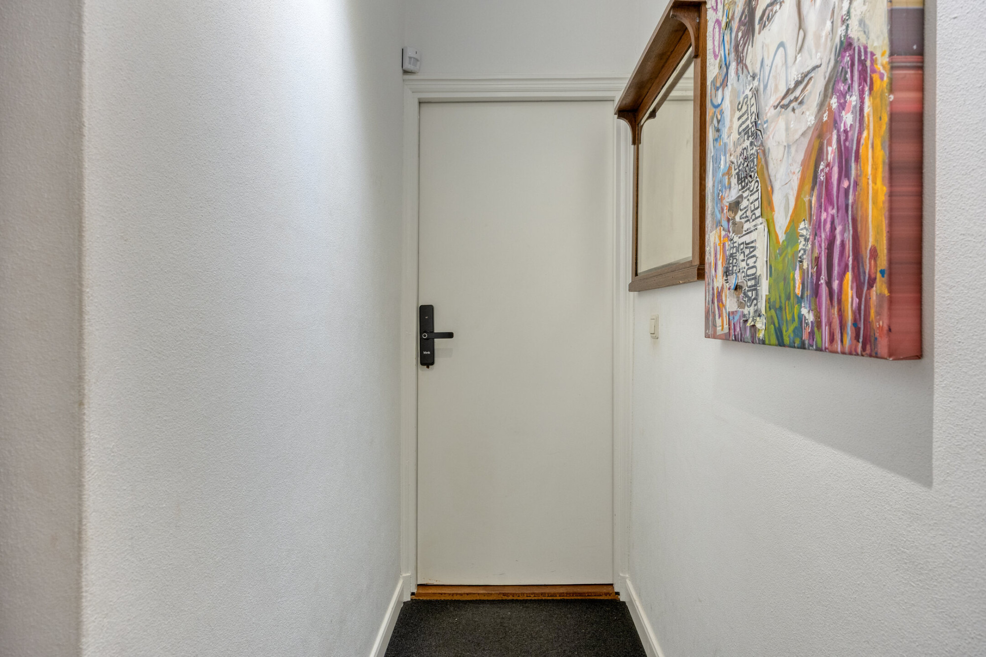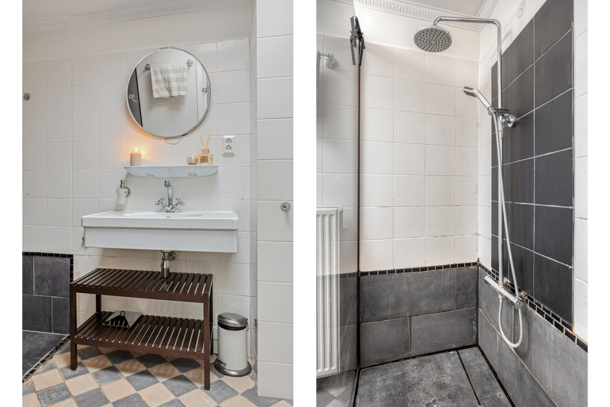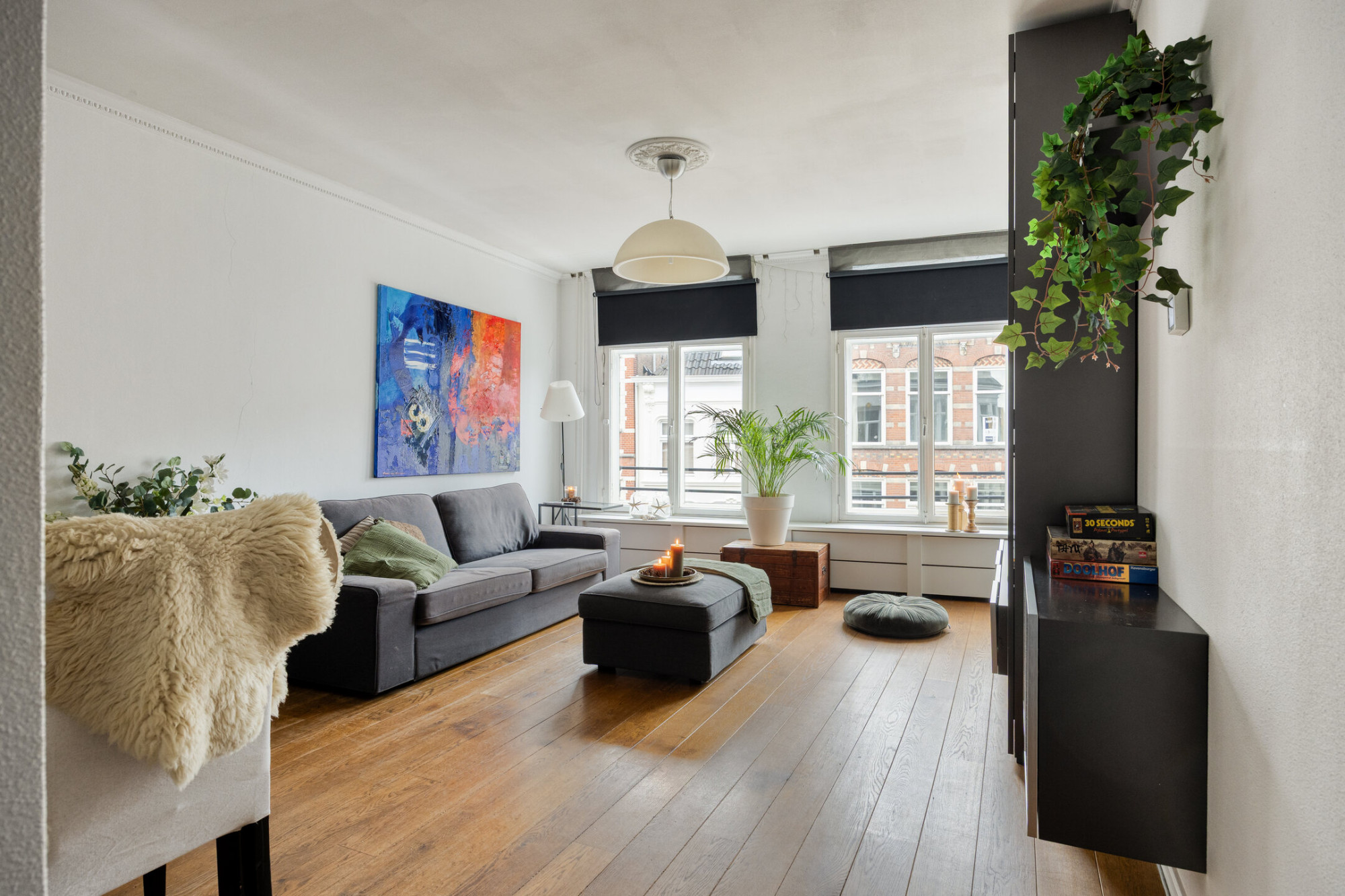 De maisonnette is verdeeld over twee woonlagen en biedt een sfeervolle woonkamer met fraai uitzicht en massief eiken vloer. De moderne keuken aan de achterzijde is compleet uitgerust en via openslaande deuren bereik je een Frans balkon voor extra licht en lucht. Op de verdieping bevinden zich twee slaapkamers, waaronder een royale kamer met walk-in-closet en een tweede slaapkamer met directe toegang tot het dakterras, evenals een complete badkamer.