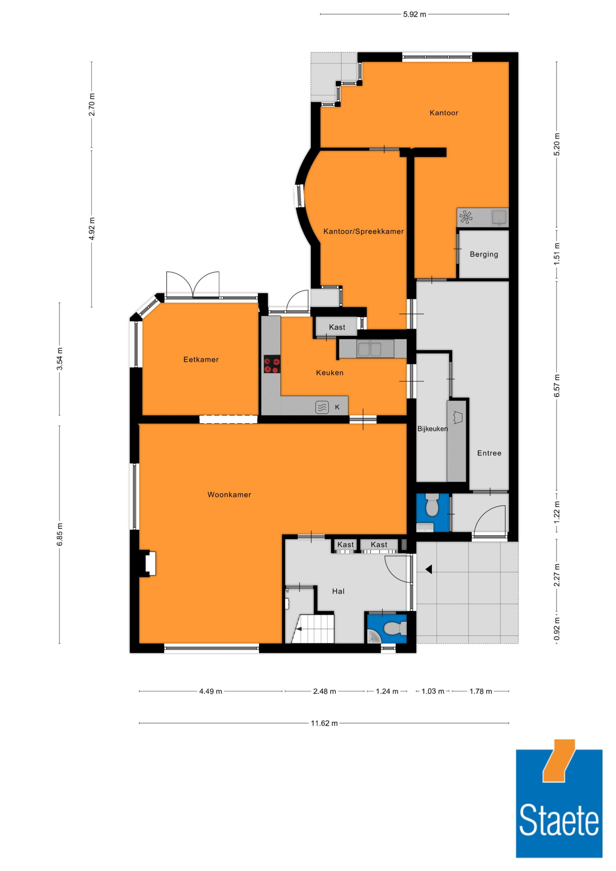 - Mogelijkheid tot kantoor- en/of praktijkruimte aan huis met eigen entree óf mogelijkheid tot dubbele bewoning;
