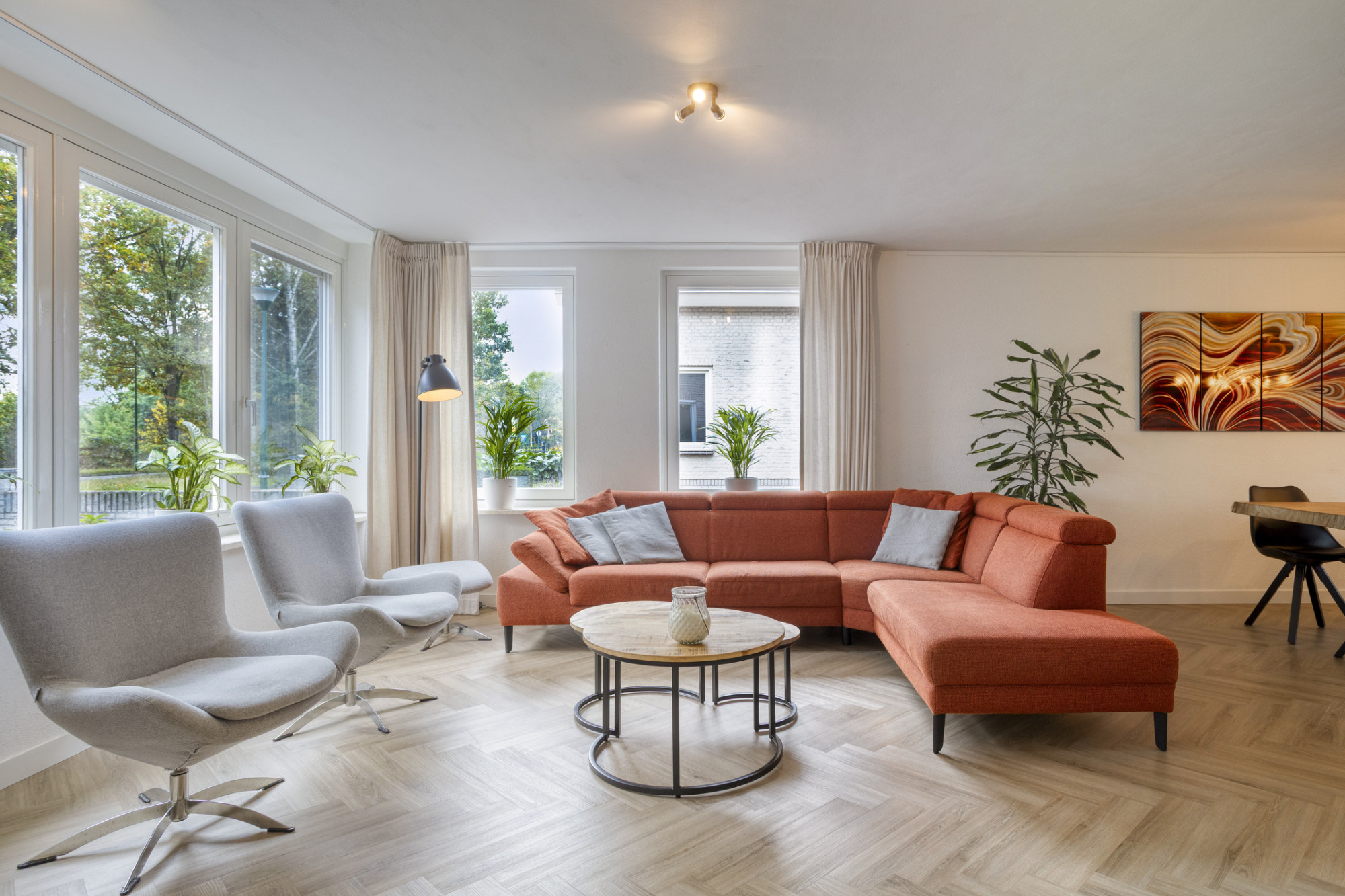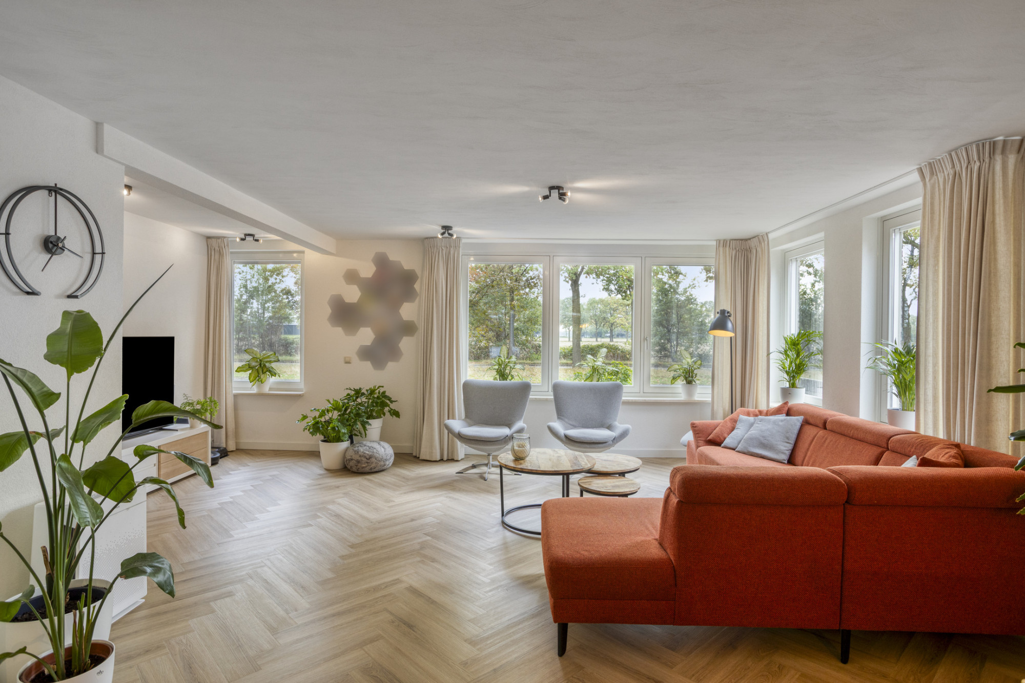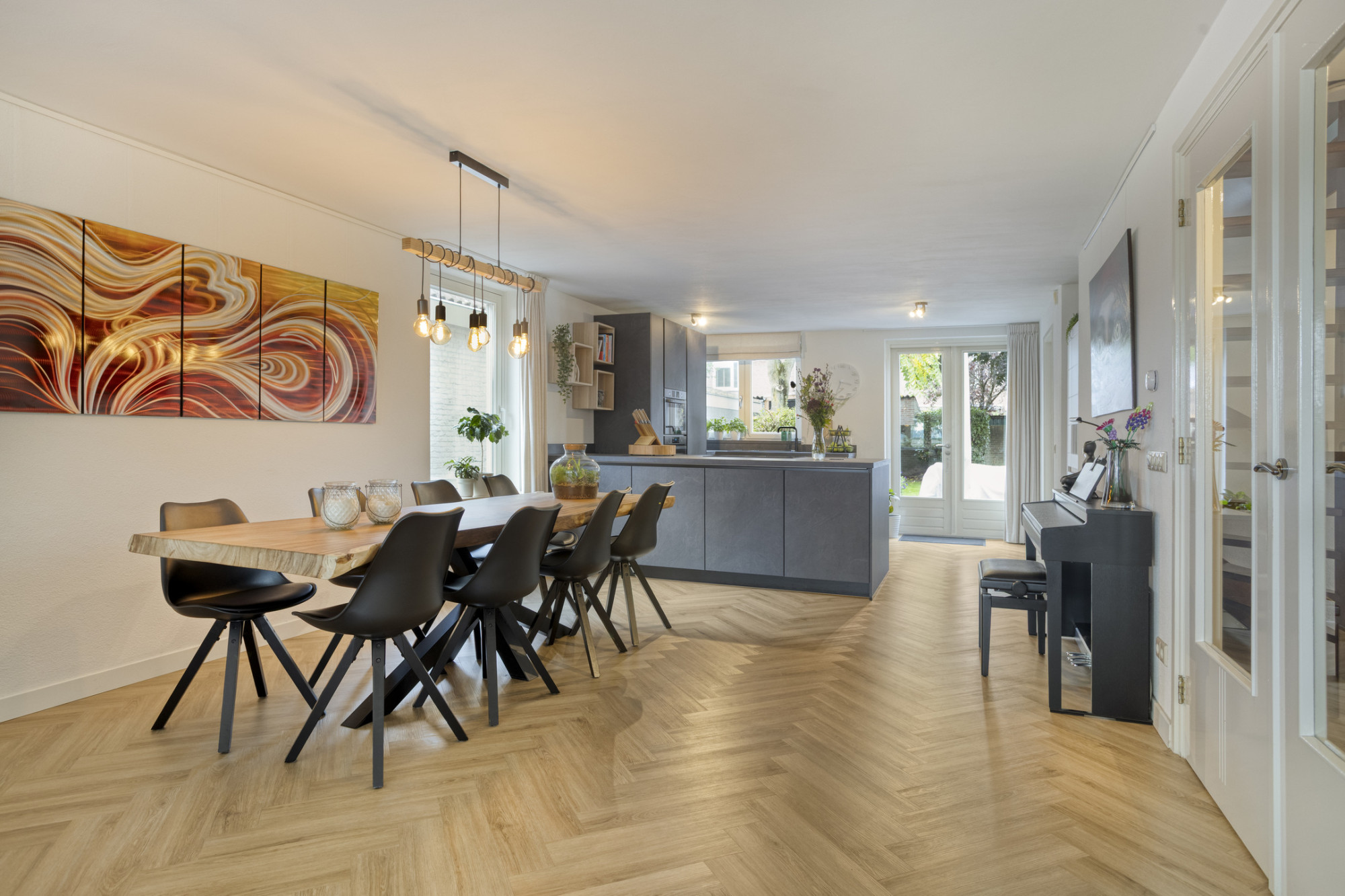 - Veel daglicht dankzij grote raampartijen en dubbele deuren naar de tuin;