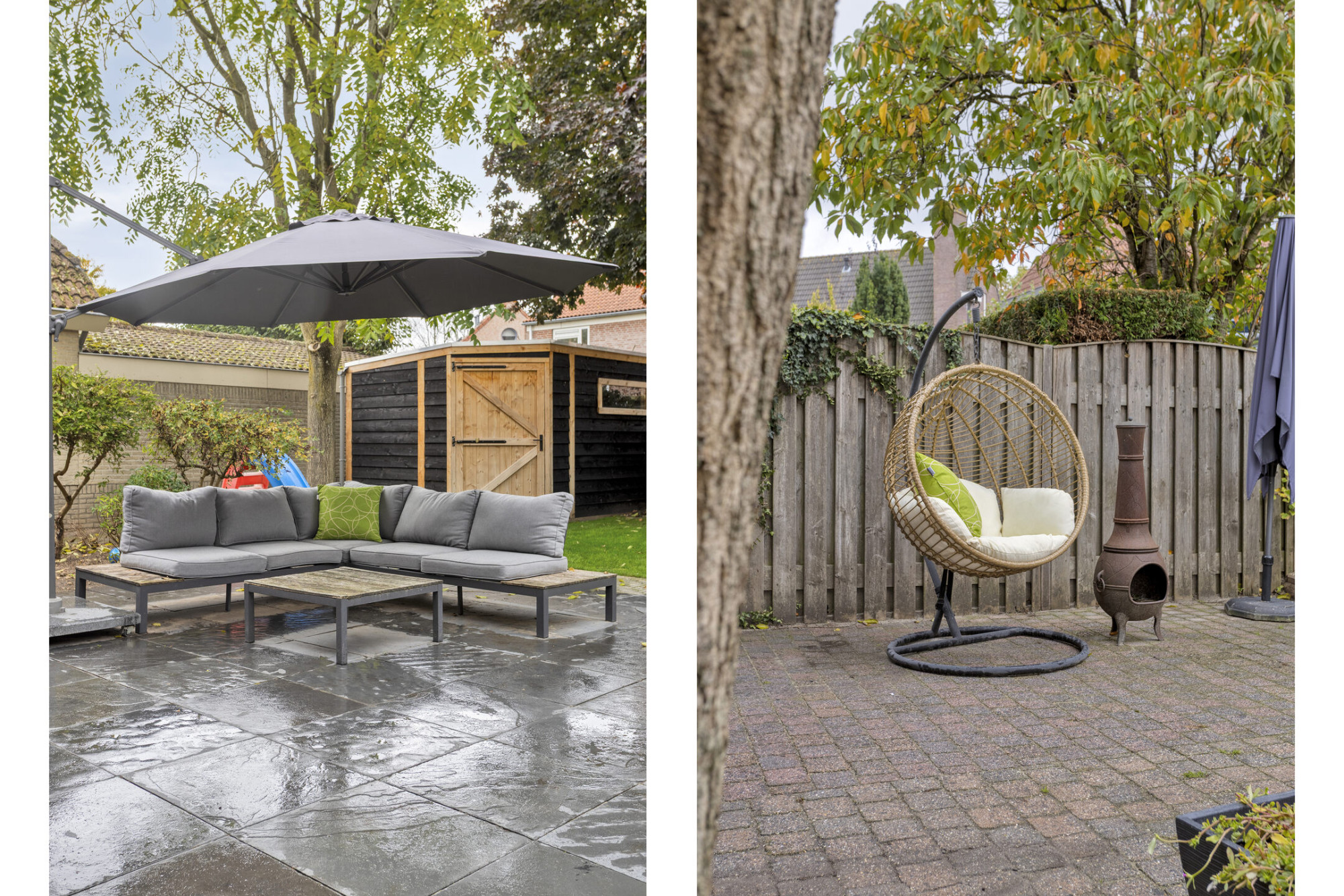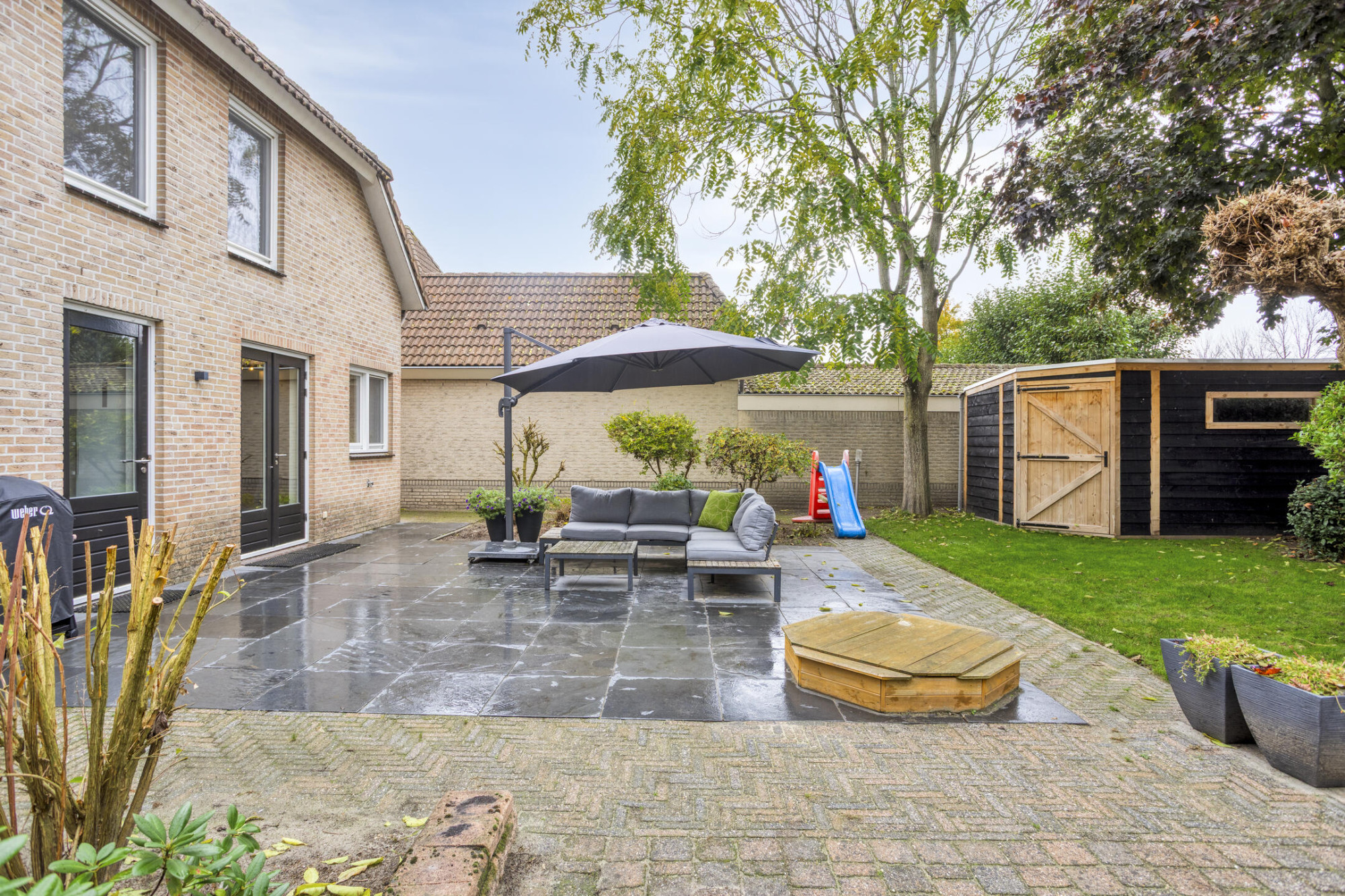 - Grote tuin met terras en nieuwe schuur (2025);
