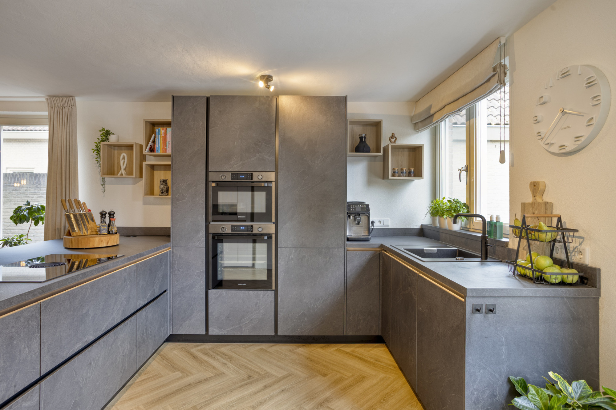 - Open keuken (2022) in U-opstelling met Quooker en dubbele oven;