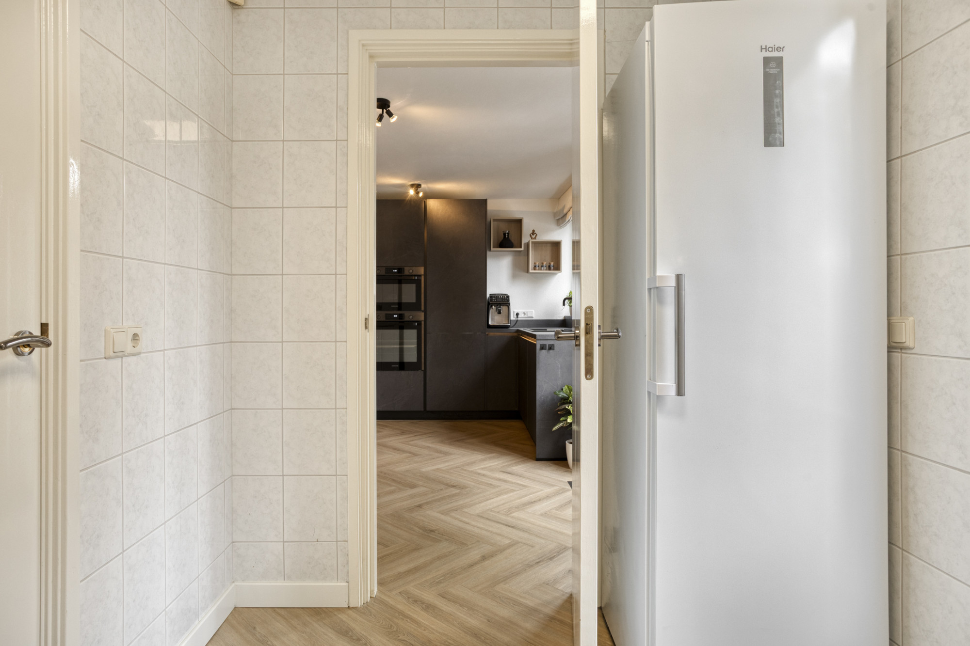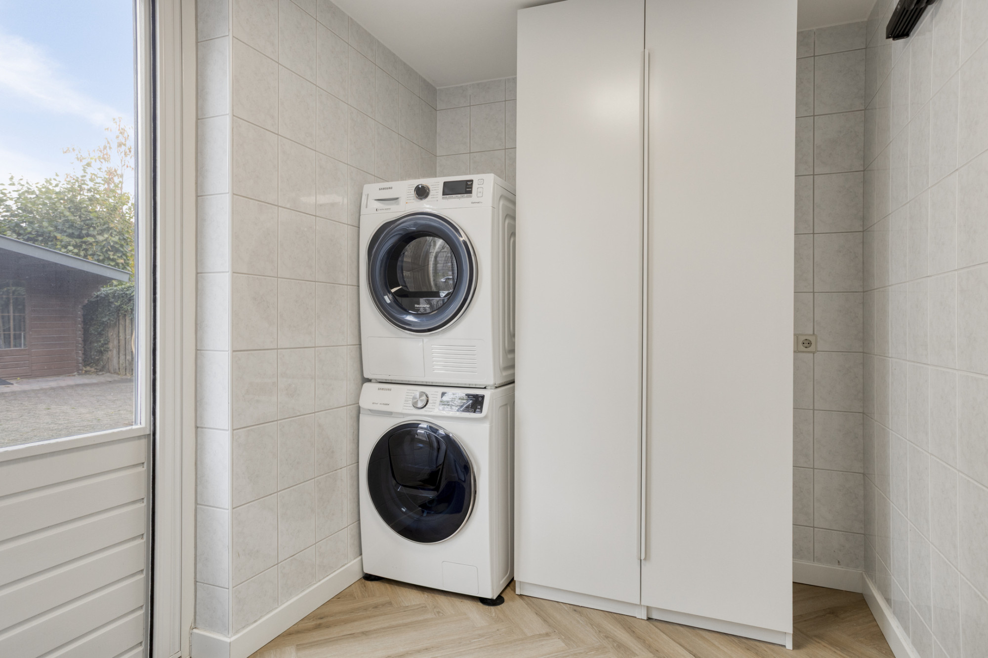 - Bijkeuken met berging en aansluitingen voor de wasapparatuur;