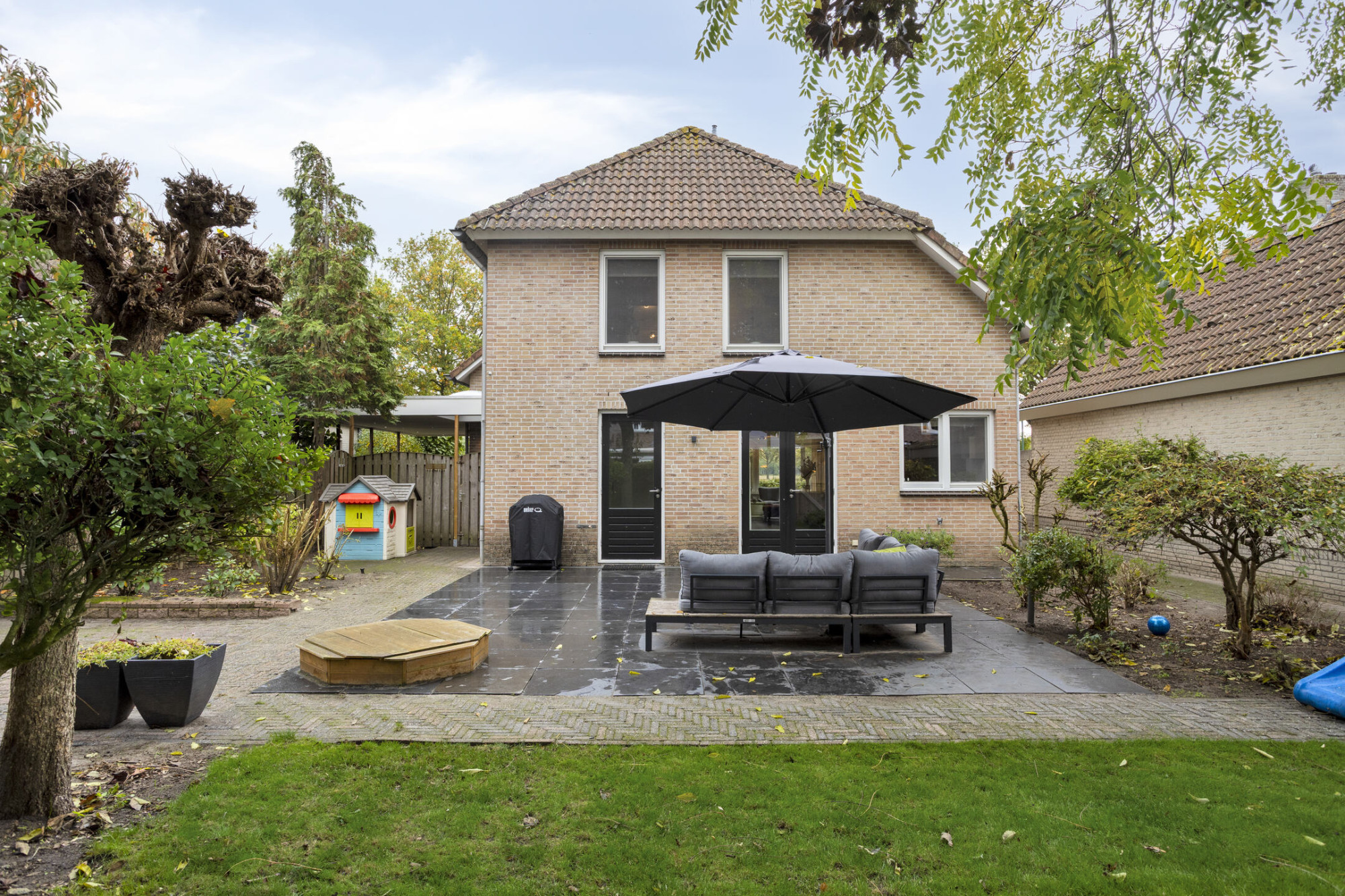 Buiten wacht je een keurig aangelegde tuin met een terras en een gloednieuwe schuur uit 2025. Dit is een heerlijke plek voor spelende kinderen, gezellige barbecues of om misschien wel je eigen groente en fruit te verbouwen. Parkeren doe je hier gewoon op je eigen oprit met carport én een laadpaal voor je elektrische auto.