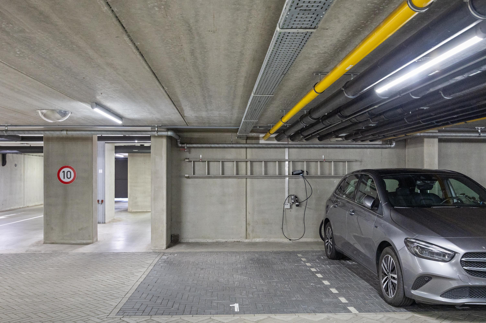 - De parkeergarage is voorzien van een brand beveiligingssysteem;
