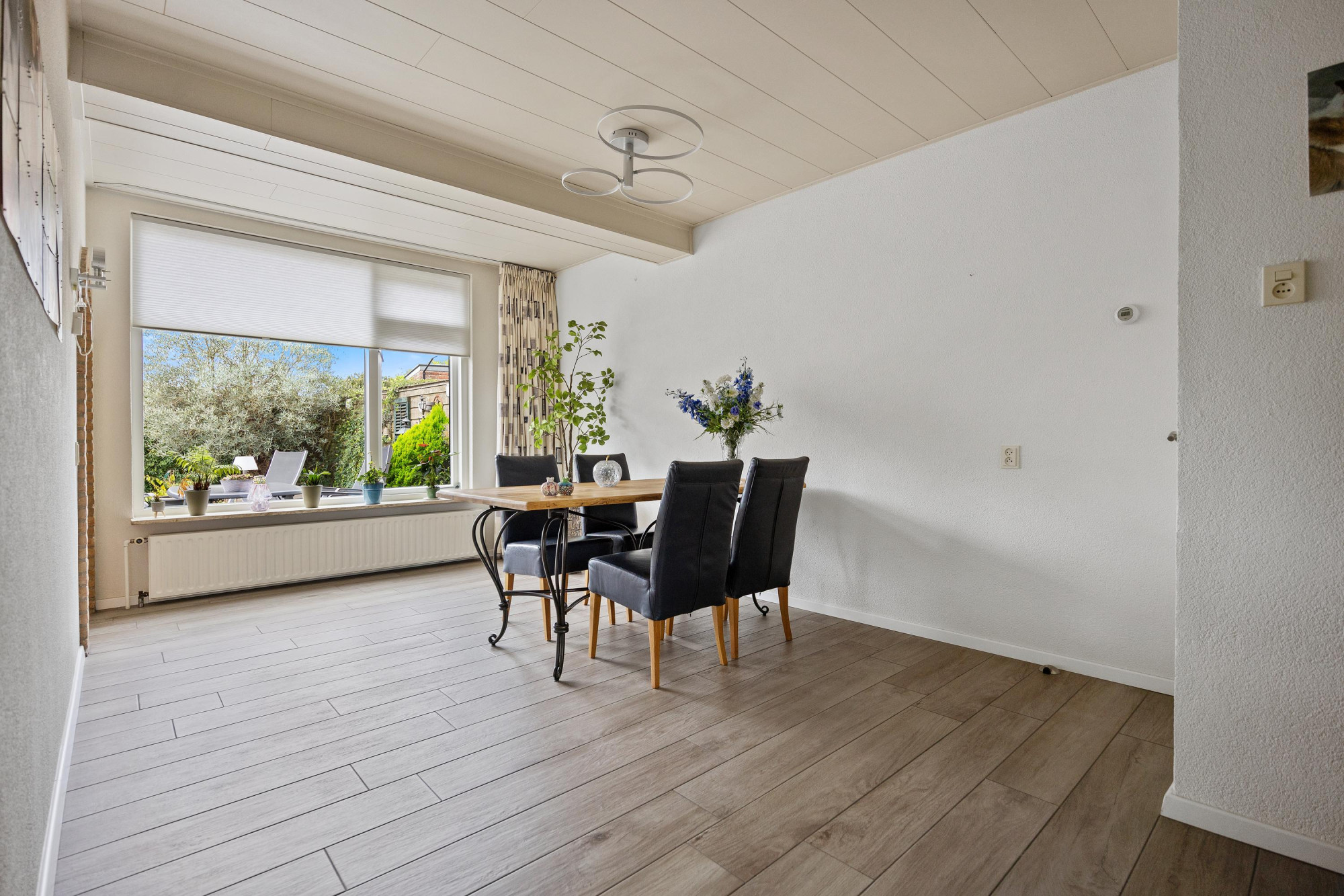 Ook buiten is het echt genieten. De tuin ligt op het westen, zon in de middag en avond, dus ideaal voor die spontane barbecue. De grote garage en oprit maken het leven praktisch en comfortabel. Werk je veel vanuit huis of heb je een bus vol gereedschap? Dan is dit huis echt een buitenkans. Met 10 zonnepanelen ben je bovendien helemaal klaar voor de toekomst.