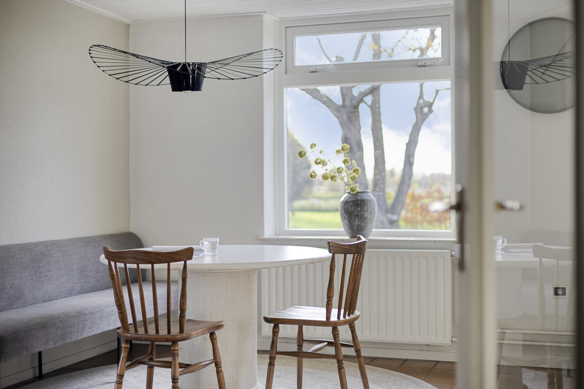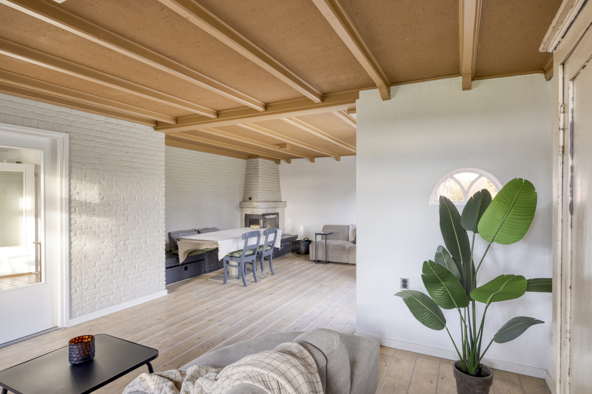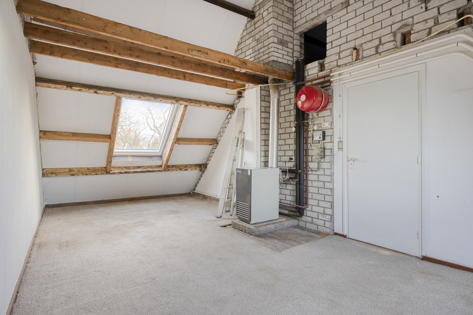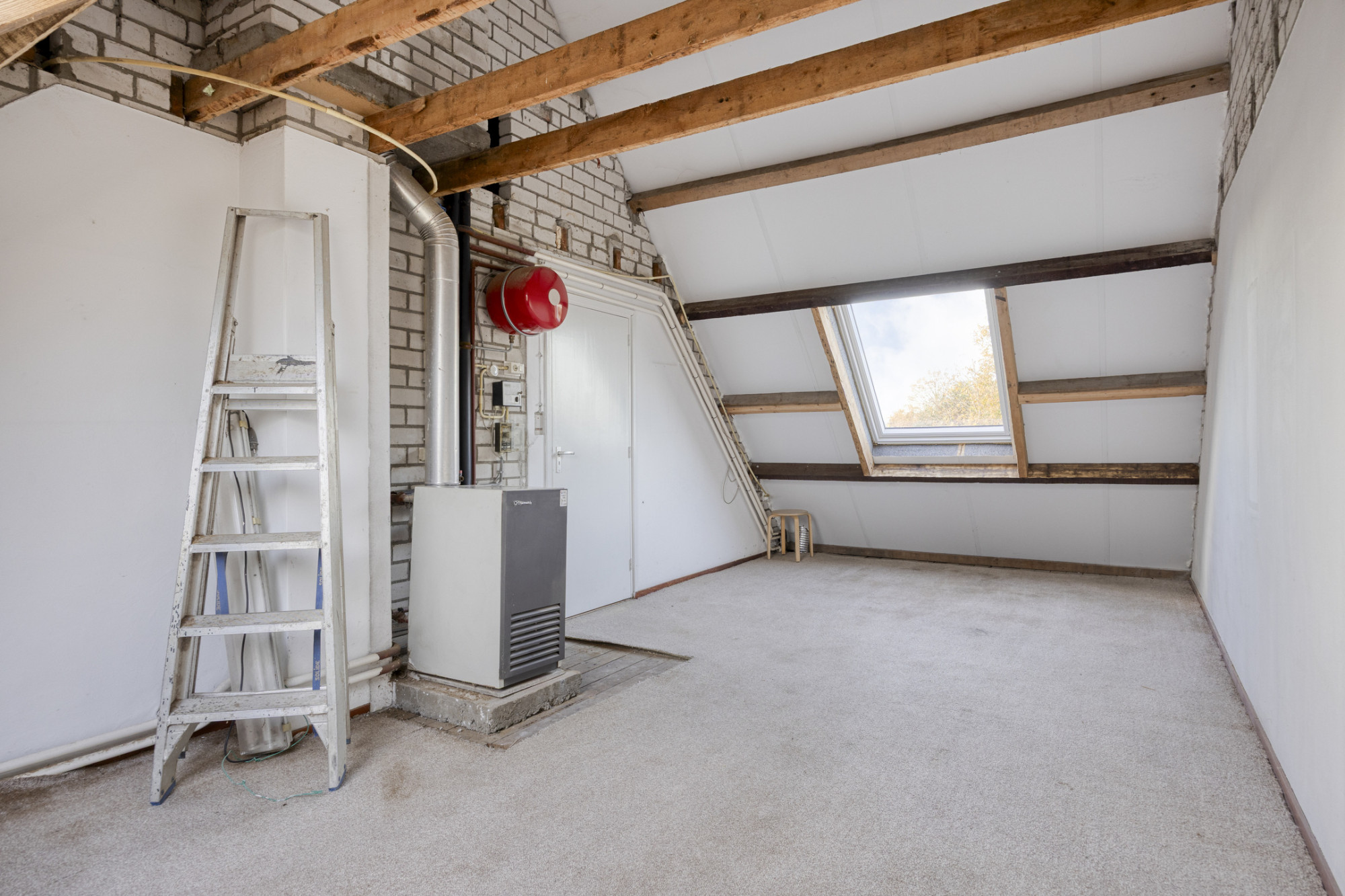 De boerderij vormt een solide en praktische basis voor wie graag verder wil moderniseren of eigen woonwensen wil realiseren. De begane grond heeft een fijne indeling met een ruime woonkamer die dankzij de grote ramen prettig daglicht binnenlaat en prachtig uitzicht over de tuin biedt. De aangrenzende keuken is eenvoudig ingericht en functioneel in gebruik, met genoeg ruimte om deze geheel naar eigen smaak te vernieuwen.