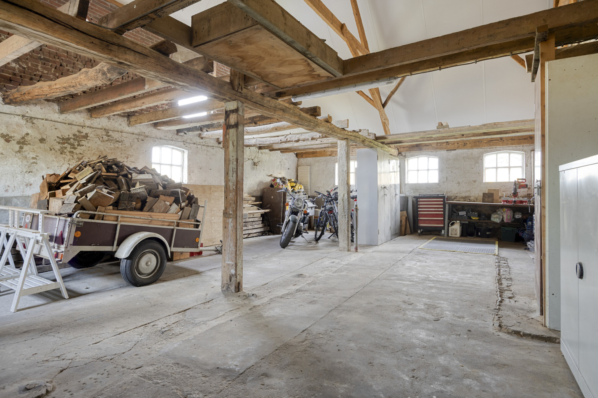 Tot slot beschikt de woonboerderij over twee handige bergingen voor onder meer fietsen en tuingereedschap. De direct aangebouwde garage met plek voor twee auto’s maakt de voorzieningen rondom het huis compleet.