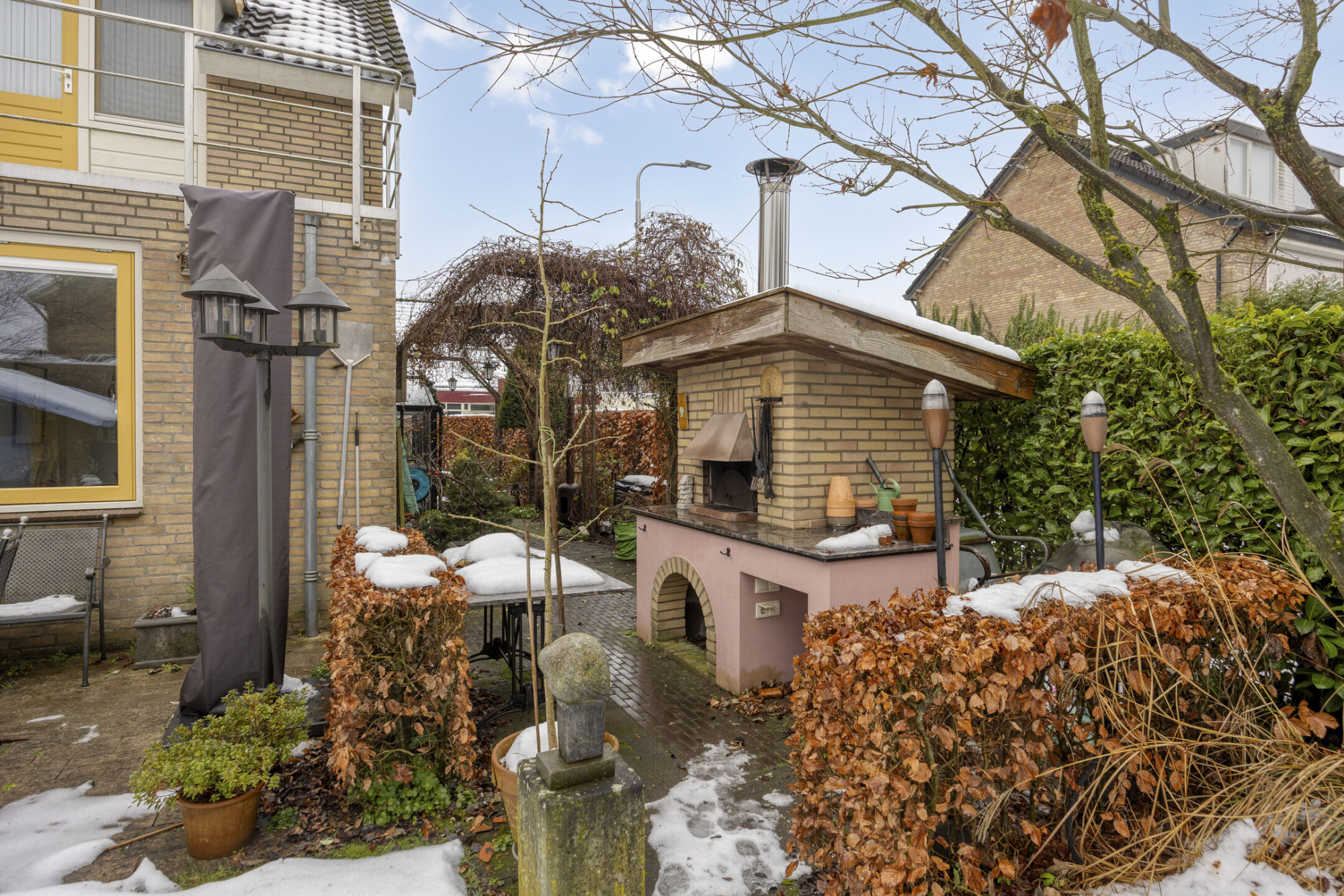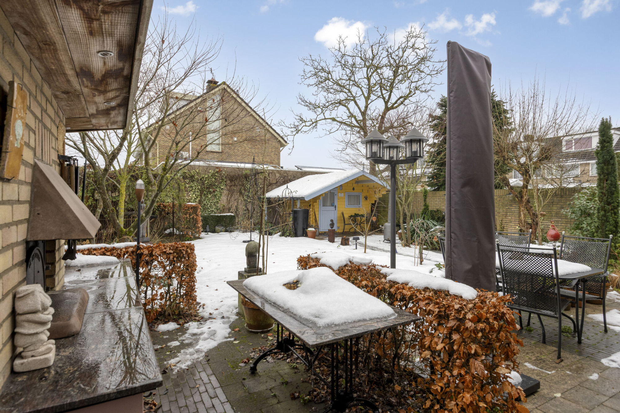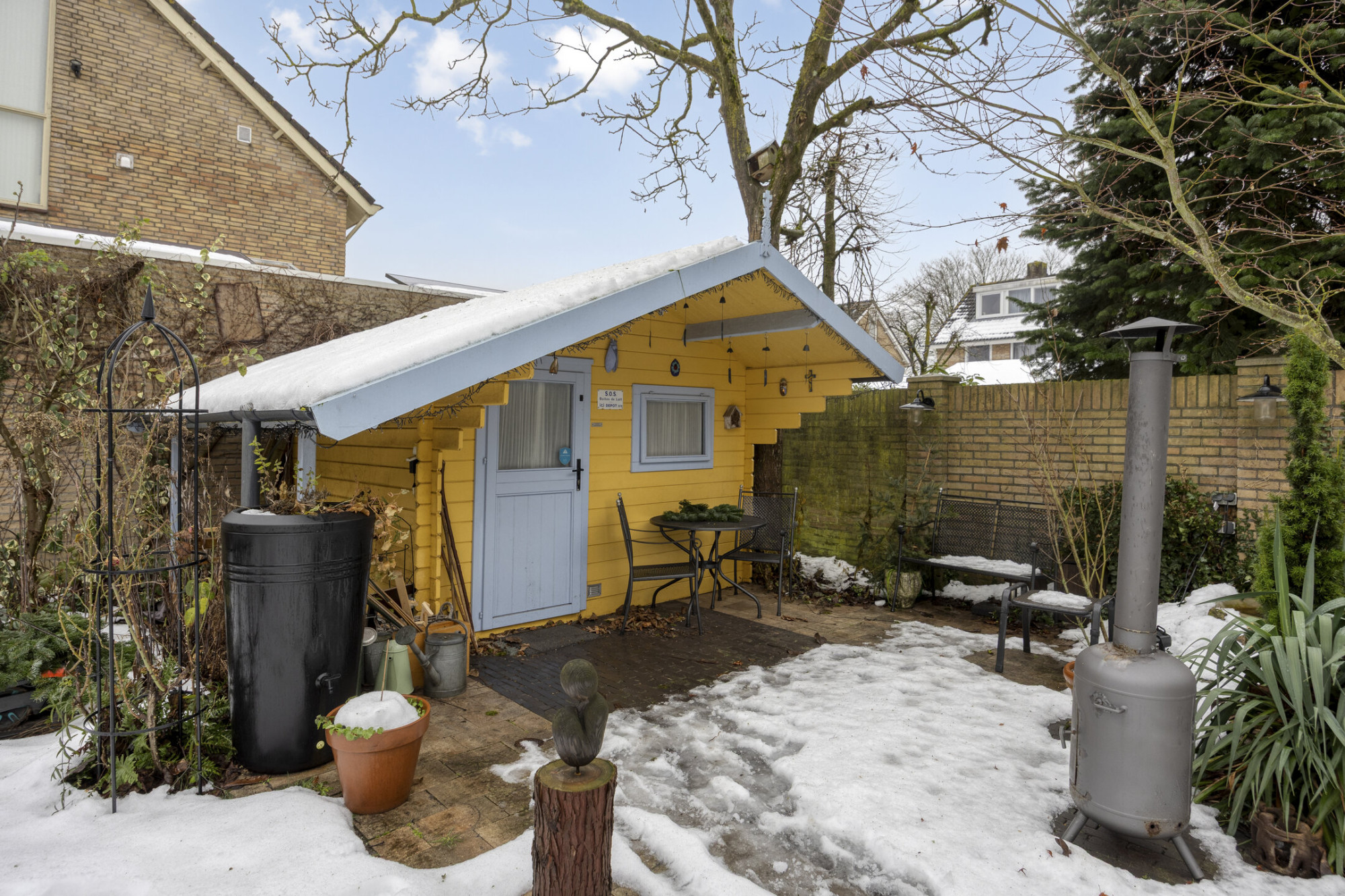 - Beschikt over twee bergingen, waarvan één in de tuin;