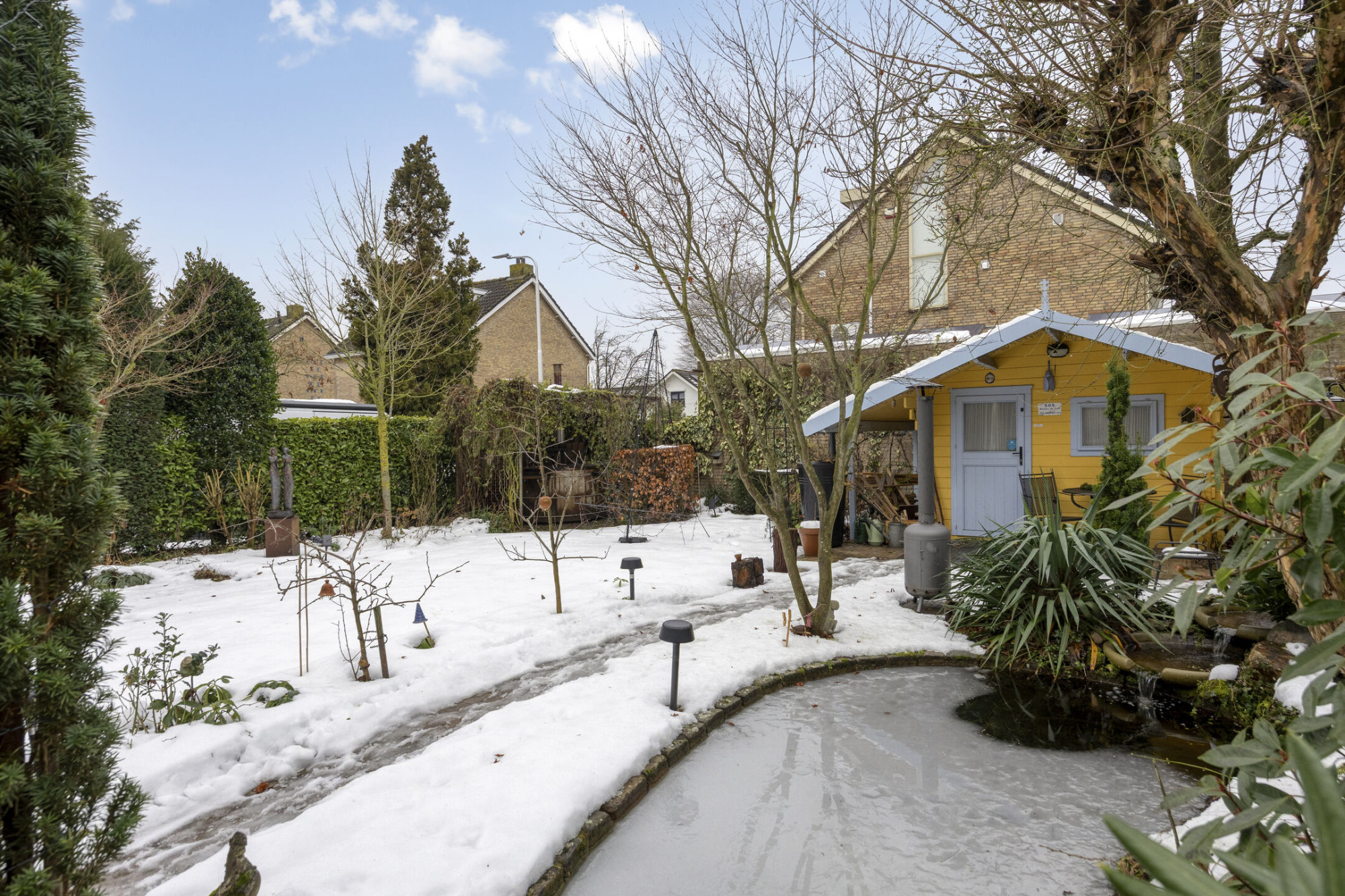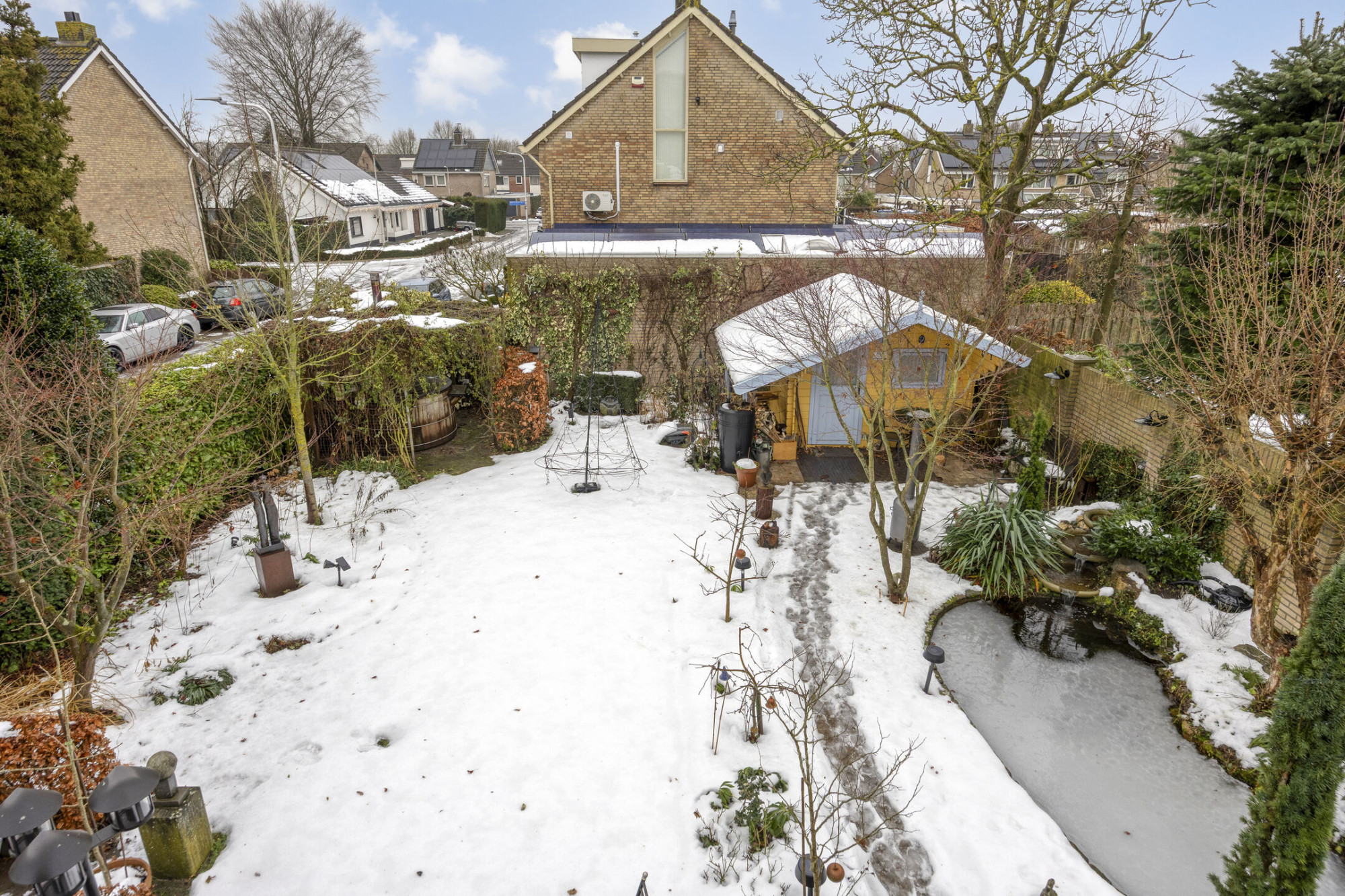 - Ruime, mooi aangelegde achtertuin met vijver;