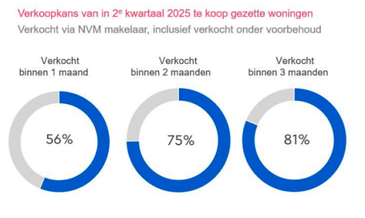 Er werden bijna 42.000 woningen verkocht. Een flink aandeel bestond uit uitpondwoningen die de verkoopprijzen drukken. Tegelijk werden de meeste huizen vlot verkocht, gemiddeld in 29 dagen. Maar liefst 81% van de nieuw aangeboden woningen vond binnen drie maanden een koper. Het hogere aanbod vlakt wel de prijsstijging af. De gemiddelde transactieprijs van alle via NVM-makelaars verkochte woningen in Nederland bleef hierdoor stabiel op 496.000 euro, net onder een half miljoen.