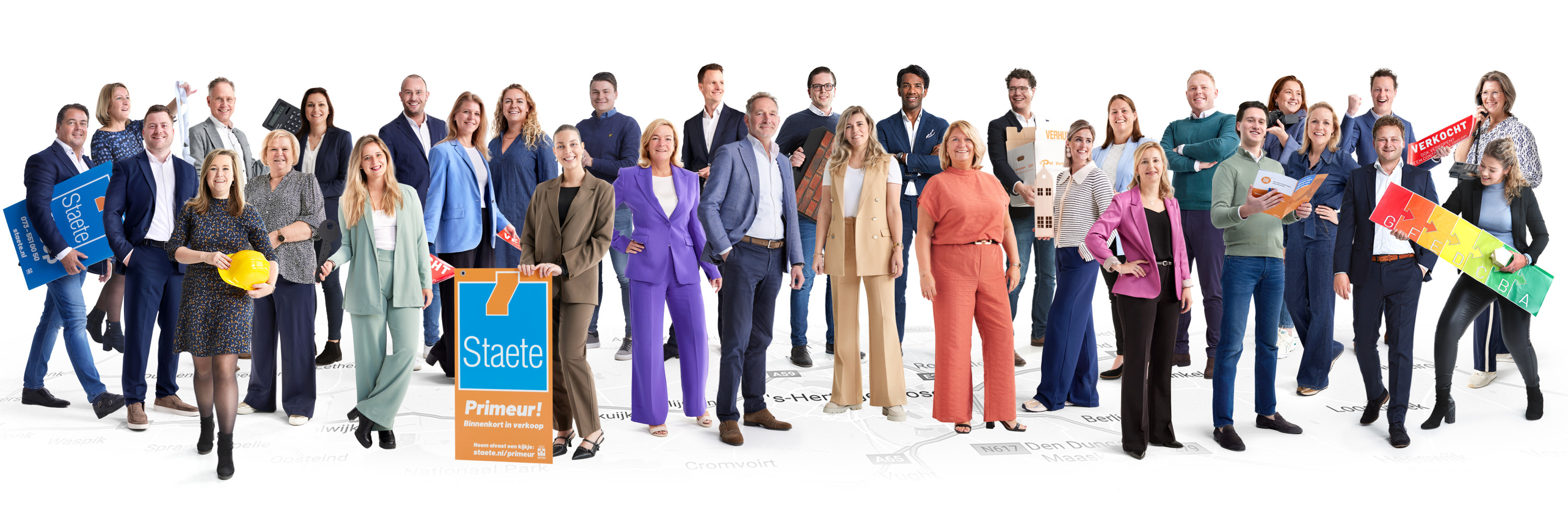 Start bij Staete. Wat je woonvraag ook is: de makelaars, juristen, marketeers, taxateurs, nieuwbouwspecialisten en financieel adviseurs van Staete helpen je verder. Dat betekent: altijd snel, specialistisch, eerlijk én onderbouwd antwoord op al je woonvragen. Of je nu wilt verhuizen, aankopen, verkopen, verbouwen, uitbouwen of verduurzamen: de woonspecialisten van Staete gaan altijd tot het uiterste. Stel je woonvraag en laat je direct ontzorgen. Met 25 jaar ervaring, 30 woonspecialisten en het gemak van alles onder één dak zijn al je woonvragen in goede handen bij Staete.